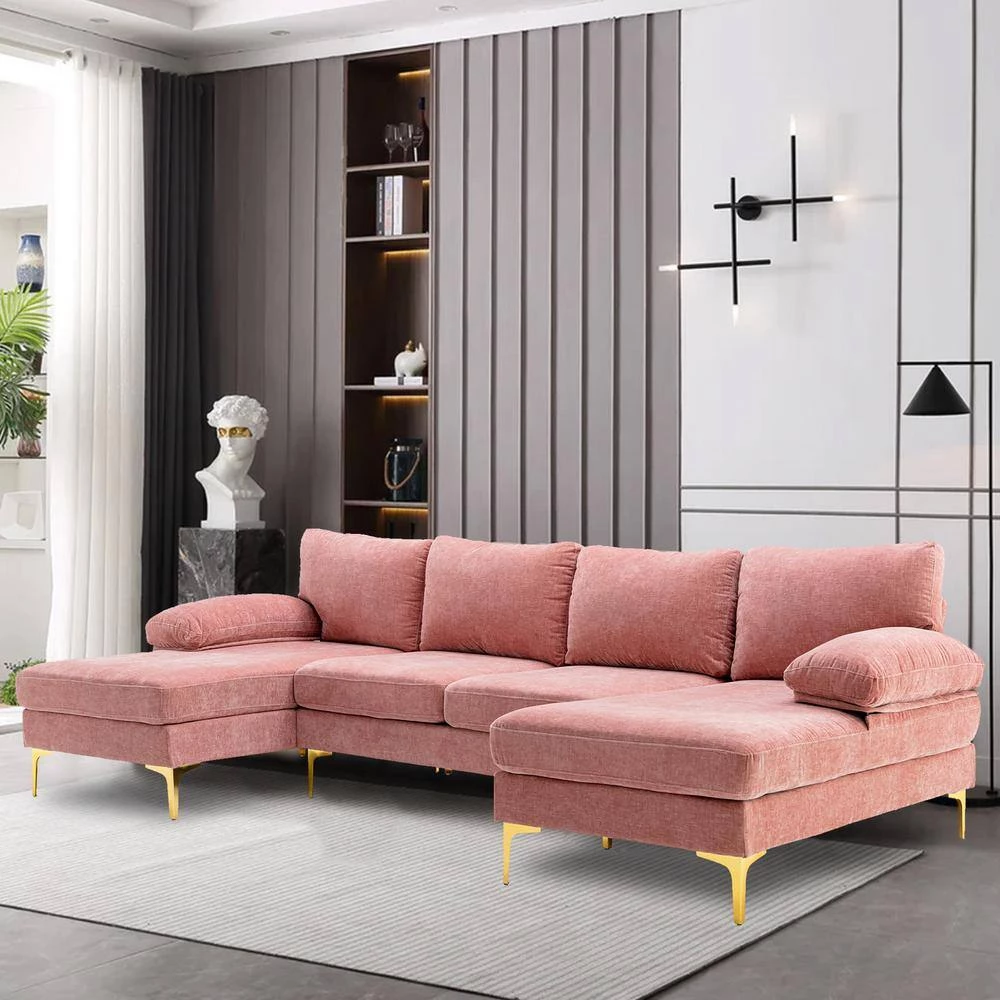 The stylishly designed U-shaped sofa will inspire a fresh look and bring comfort to your living space. Sturdy plywood frame, chenille fabric and filled with high-density foam make this combination sofa beautiful and comfortable. Matches perfectly with your apartment, house or conference room Get a modern look with the U-shaped sofa to create a casual, comfortable and classic place to start and end your day.