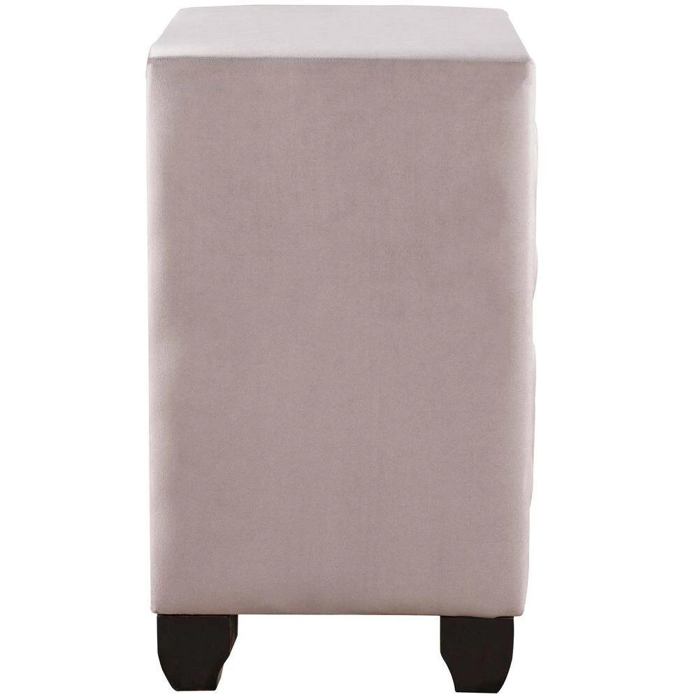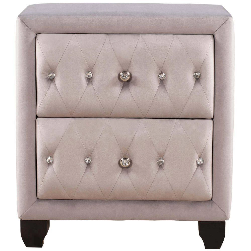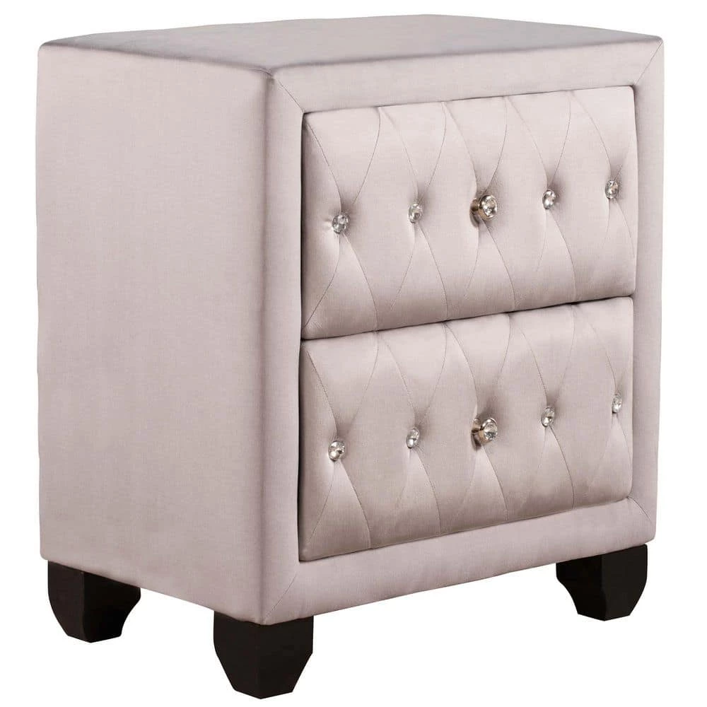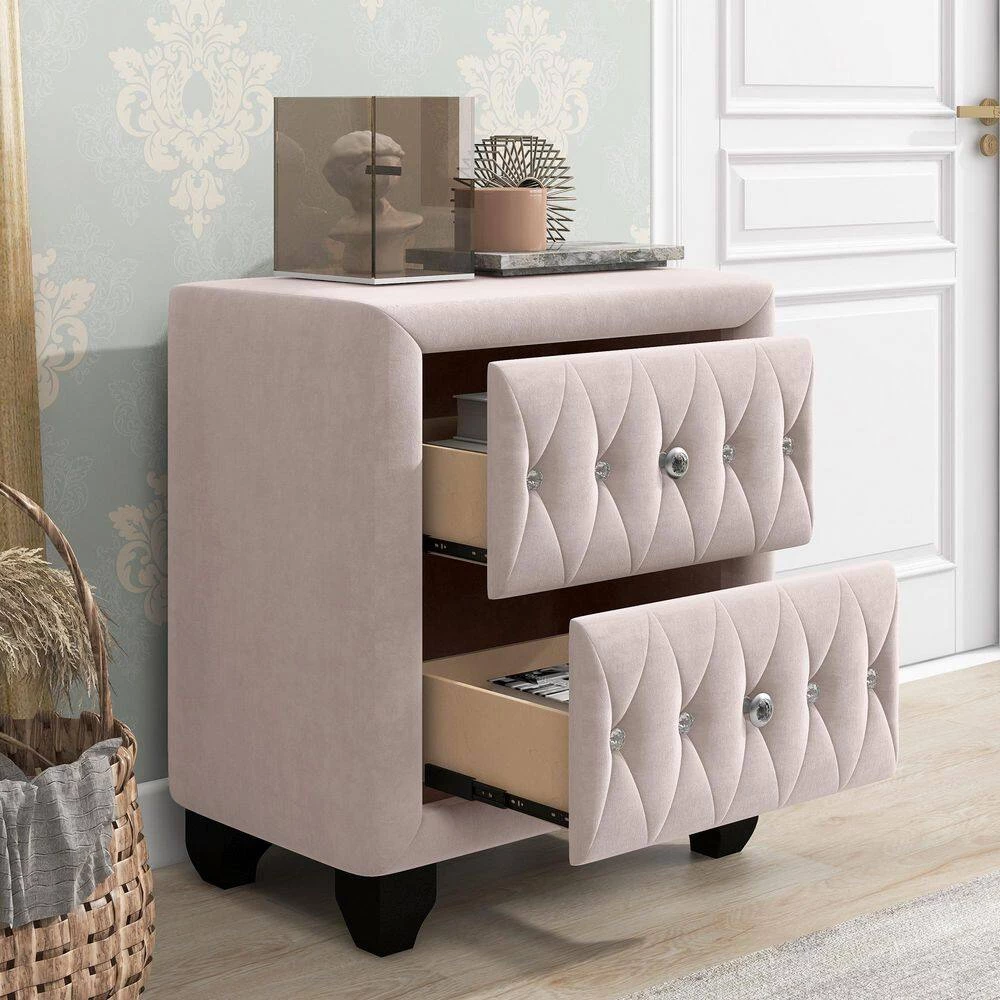 This drawer nightstand perched on elegant legs will give your bedroom a contemporary and distinguished look. To maximize bedside storage it features 2 drawers decorated with elegant diamond handles and an open area at the top. With a sturdy tabletop suitable for a lamp, cell phone, and glass of water. Featuring an open easy-access storage space ideal for bedside reading materials, the bedroom nightstand also includes 2 convenient and practical drawers with smooth metal drawer slides and diamond handles.