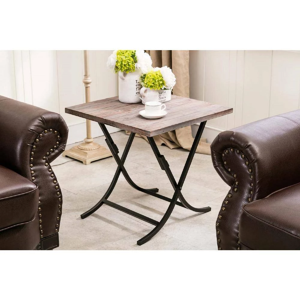 The Miriam End Table is the ideal choice to compliment your living room. With a detailed fir wood tabletop and iron criss-crossed legs, this piece is an excellent addition to any home. The sturdy wood construction and folding legs make this a flexible piece that will last.