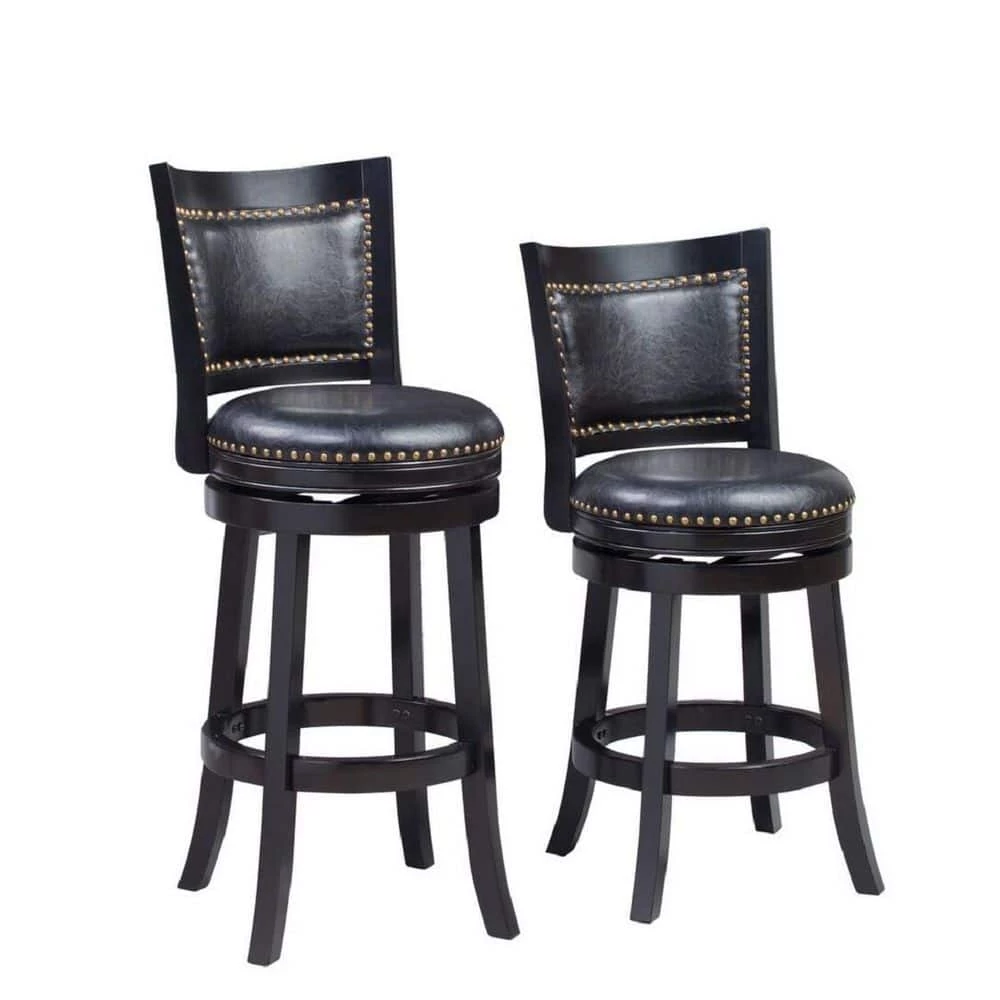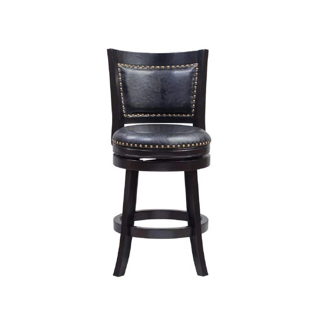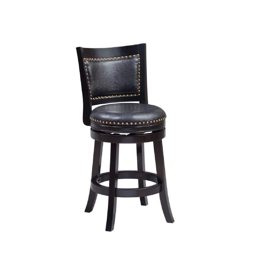 Upgrade the look of your home with the elegant Bristol swivel stool. Together, the sleek frame and seductive black finish combine with the embellished upholstery to manifest the perfect blend of style. The Bristol is composed of solid hardwood and engineered to perfection. Each leg has a strategic flare design that provides durability and balance to those who sit. The high-density foam used for the seat and backrest issue the maximum level of comfort. Additionally, the steel swivel plate features full ball bearing designs for an effortless three hundred and sixty° turn. Manufactured with precise attention to detail, the Bristol embodies features that are most important when searching for furniture seating; durability, comfort, and style. This same stool is also available in standard pub H.