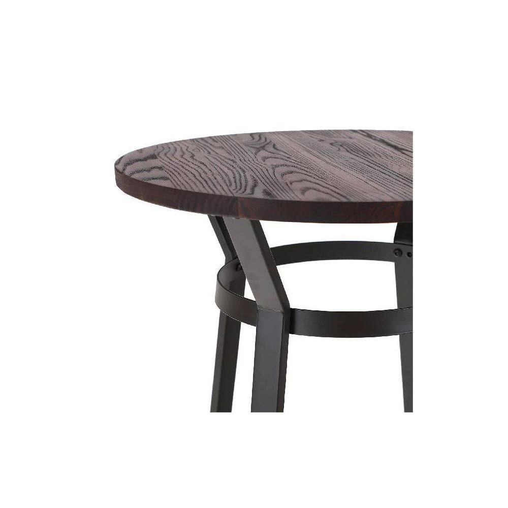Build your unique style with this classic and antique designed bar table. This table features a round wood tabletop, sturdy black metal body. 23.6 diameter bar table can provide you enought space for food, drinks, scented candles or books… It is sturdy and durable enough to bear 150 lbs so it can be used both outdoor and indoor for many different ways. You can put it in your dining room, kitchen, bistro, patio, cafe, restaurants, or anywhere else.