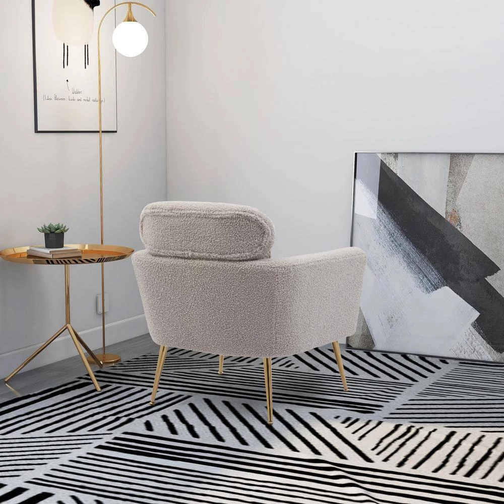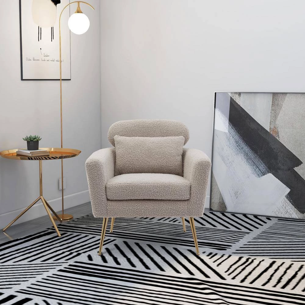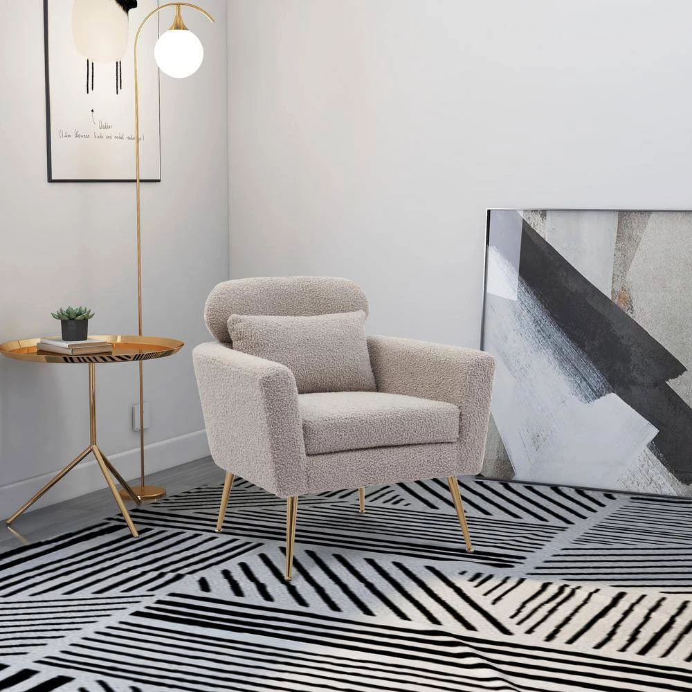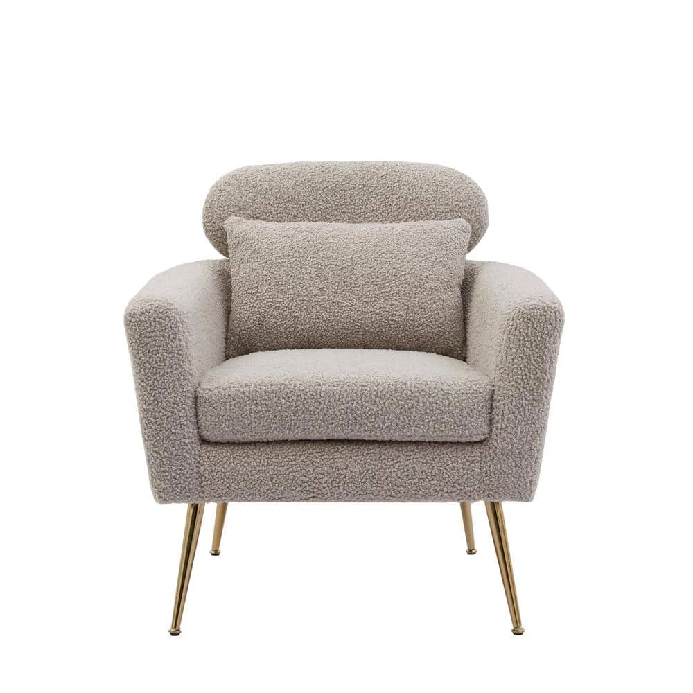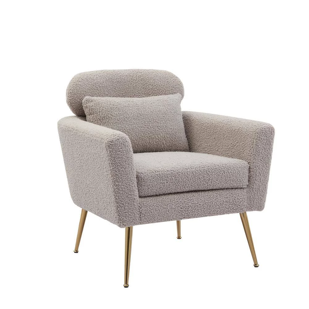 29.5″ W Light Grey Modern Chenille Upholstery Chair Armchair Upholstered with Gold Metal Legs and Throw Pillow by Unbranded