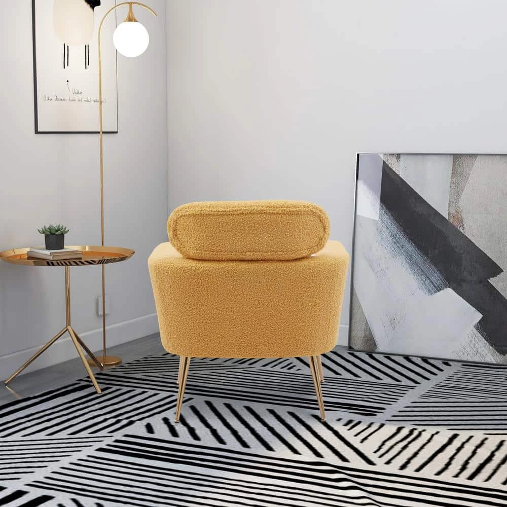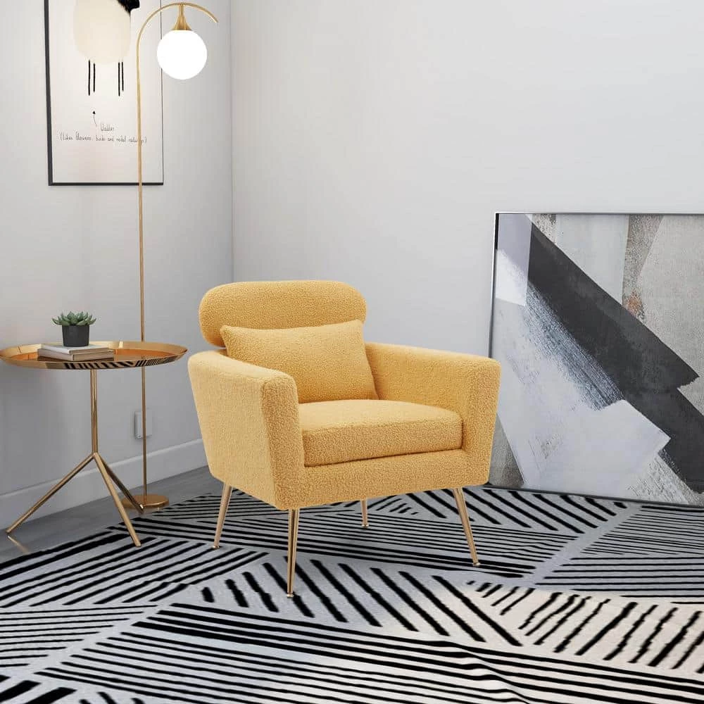 29.5″ W Yellow Modern Chenille Upholstery Chair Armchair Upholstered with Gold Metal Legs and Throw Pillow by Unbranded