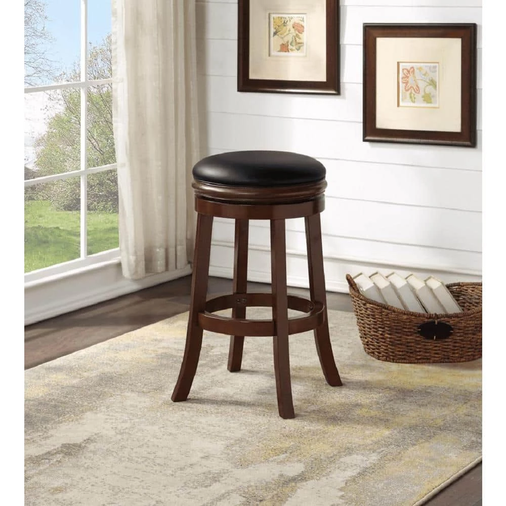 The Boraam Backless Stool is the functional accent you’ve been looking for to complement your home bar, eat-in kitchen, or bistro table. A ball-bearing swivel plate provides a versatile 360° swivel you’ll love, while the double-seat apron and stability stretchers offer durability and support. The frame is made from solid rubberwood while the cushion is padded out with high-density foam. Flared legs and single welt cord trim add handsome style to the stool. This backless stool is available in counter and bar height options. The Boraam Backless Stool also comes in two different finishes just pick your favorite.