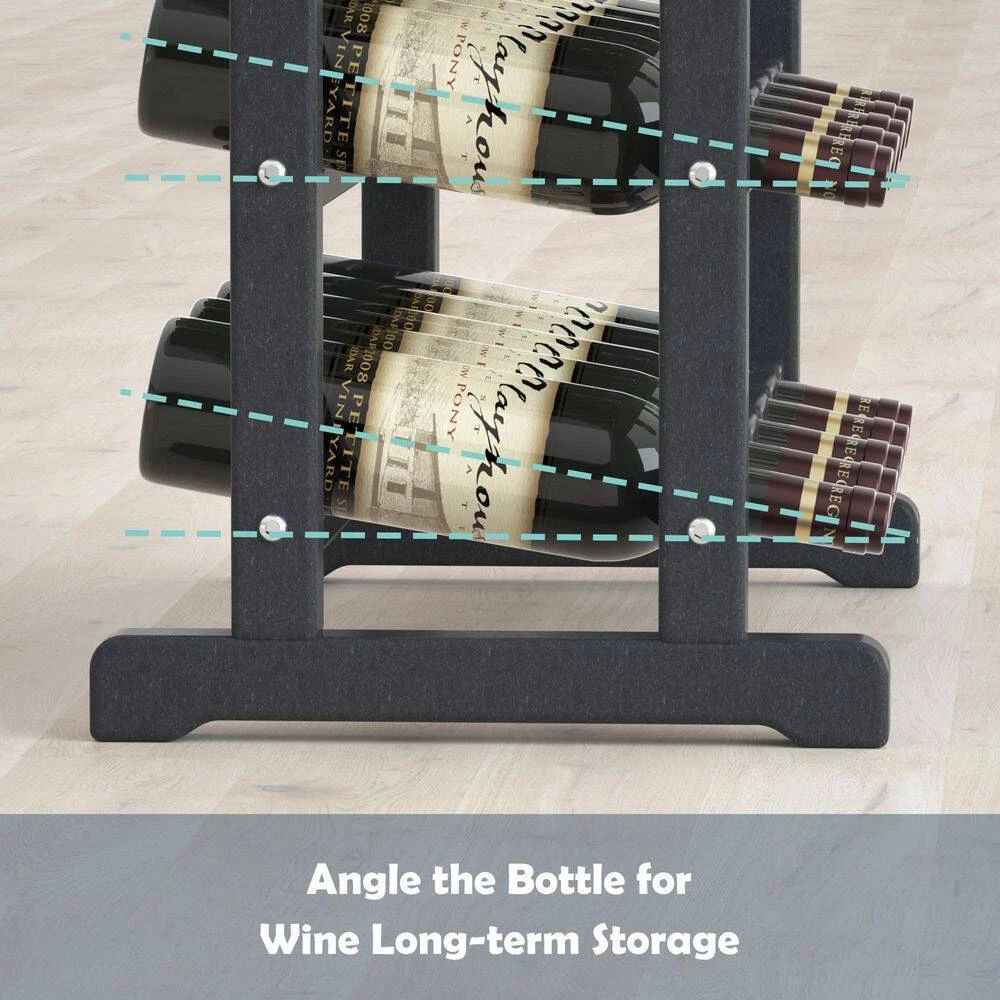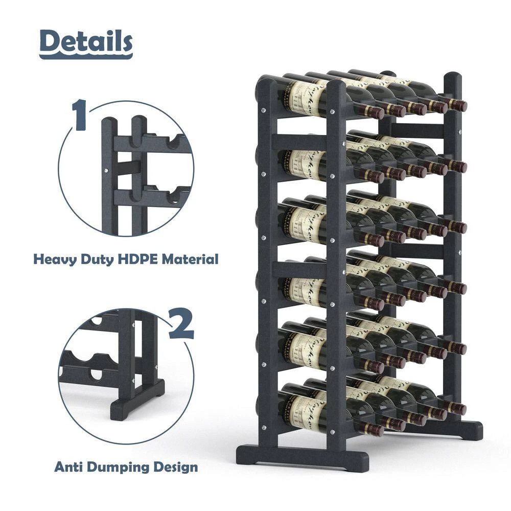 - In order to improve the stability; we use a unique foot frame design for the wine rack; in addition; our free-standing wine rack is made of heavy-duty HDPE material to make the wine rack not easy to tilt