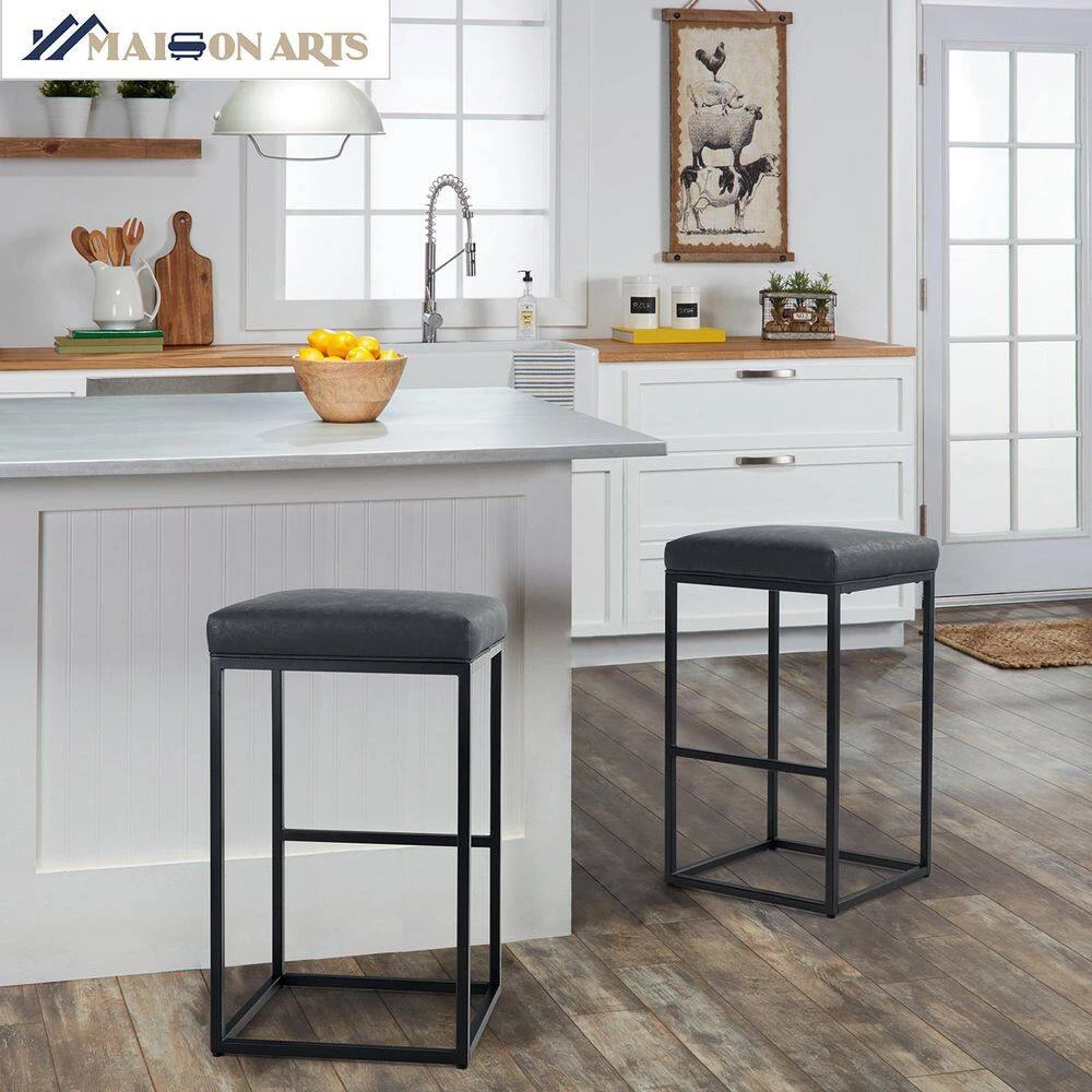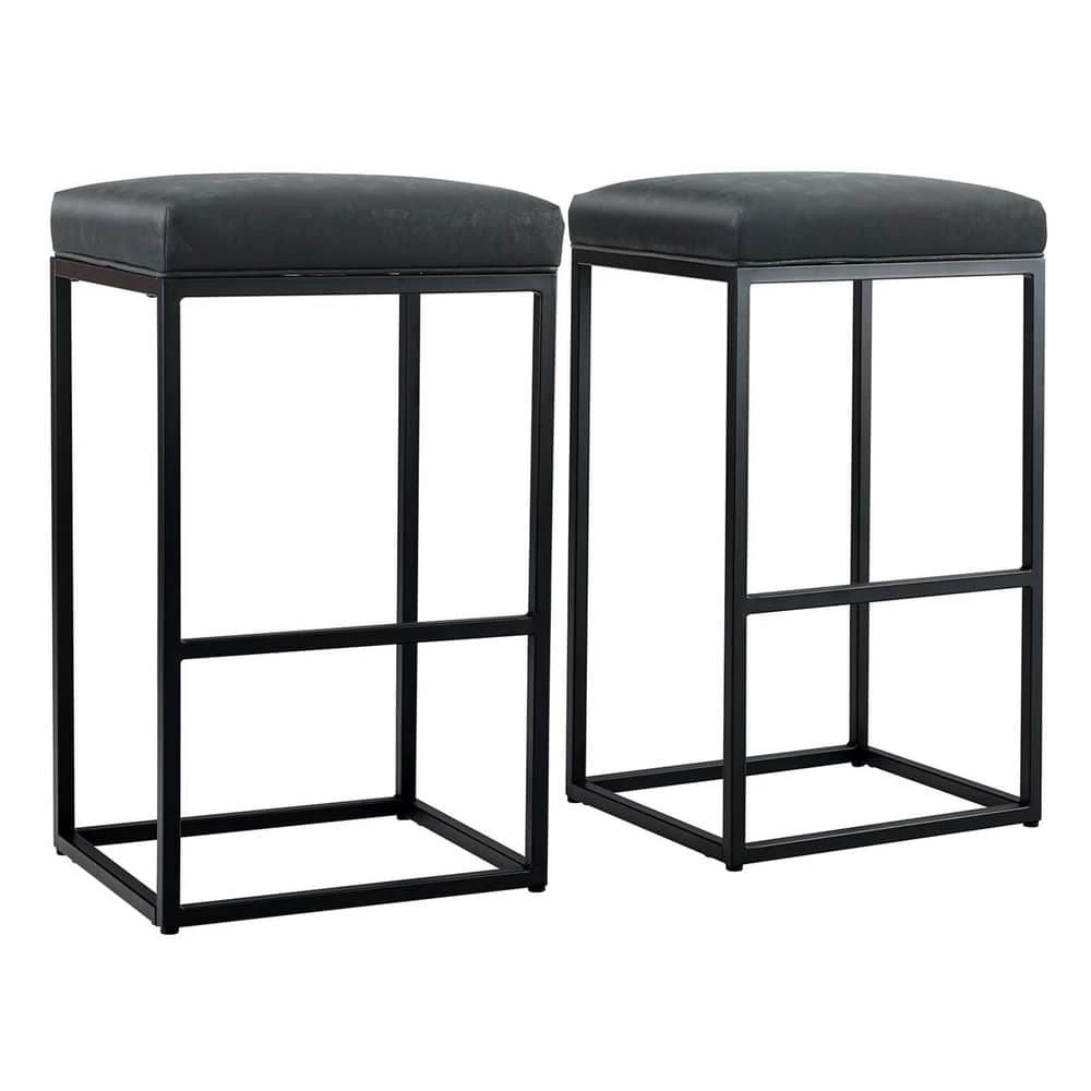 30 in. Black Leather Cushion and Black Metal Frame Metal Bar Stool (2-pieces) by Unbranded