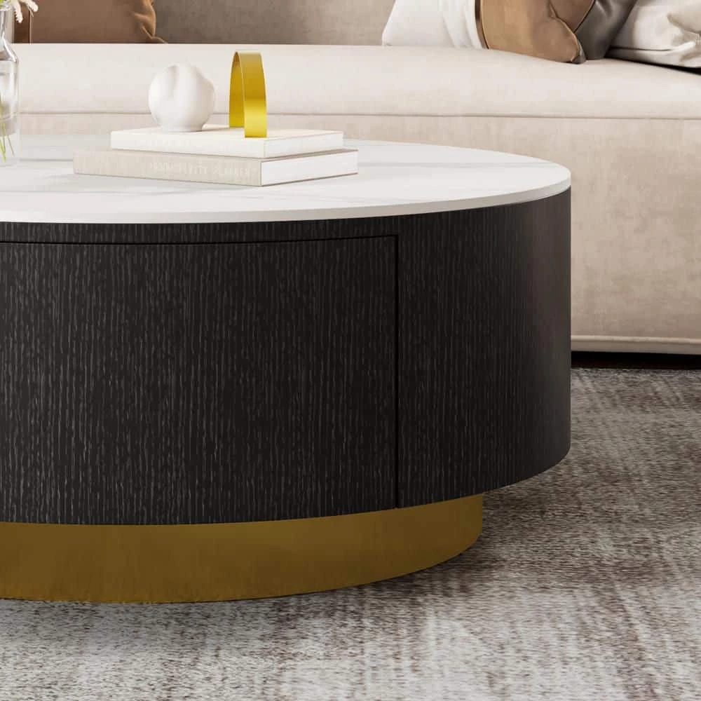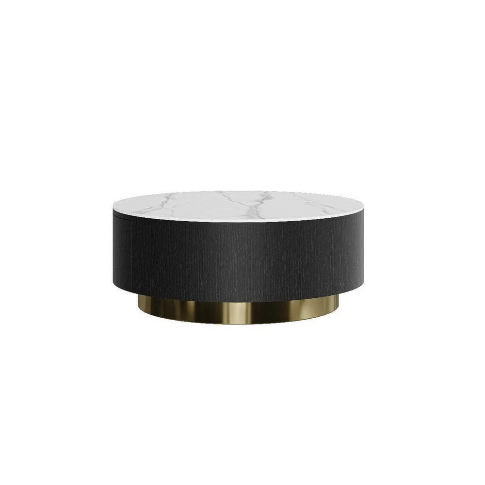 Coffee tables are a living room essential, perfect for keeping your snacks close and design books displayed. Why not try a modern and individual style, make a stunning design for your space. This design showcases a clean-lined round silhouette, founded atop a metal base in a golden hue. The thick sintered stone countertop with a natural veneer texture adds a natural appeal and enriches the texture of the coffee table, perfect for placing in contemporary abodes.