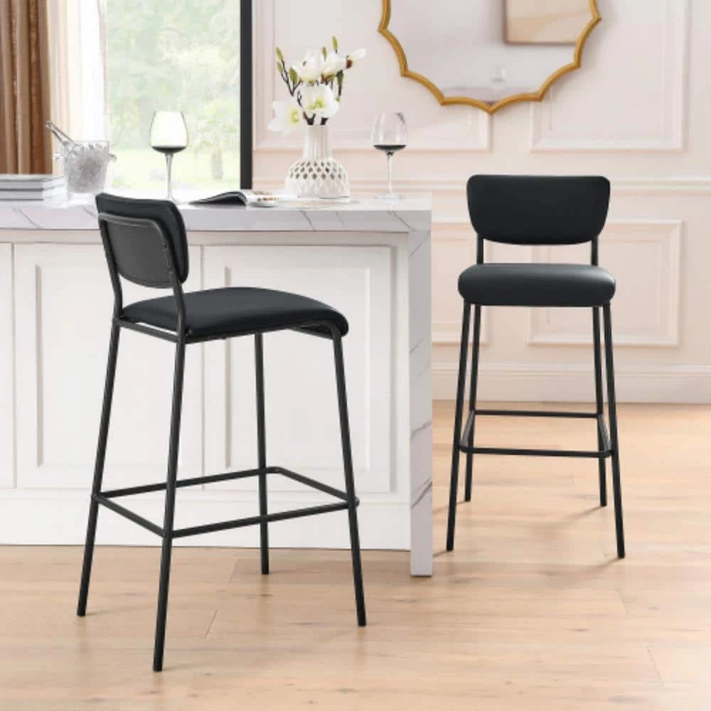 - Sturdy and durable-the set includes 2-tall bar height stools, please note these 2-barstools are bar height, not counter height, each stool is W 18 in. x D 20 in. x H 38.5 in. with seat height 29 in. combined with brown faux leather upholstered seat and durable black powder coated metal frame, it just needs to be wiped with towel to maintain these bar stool chairs durable and brand new, the max weight capacity is 300 lbs.
