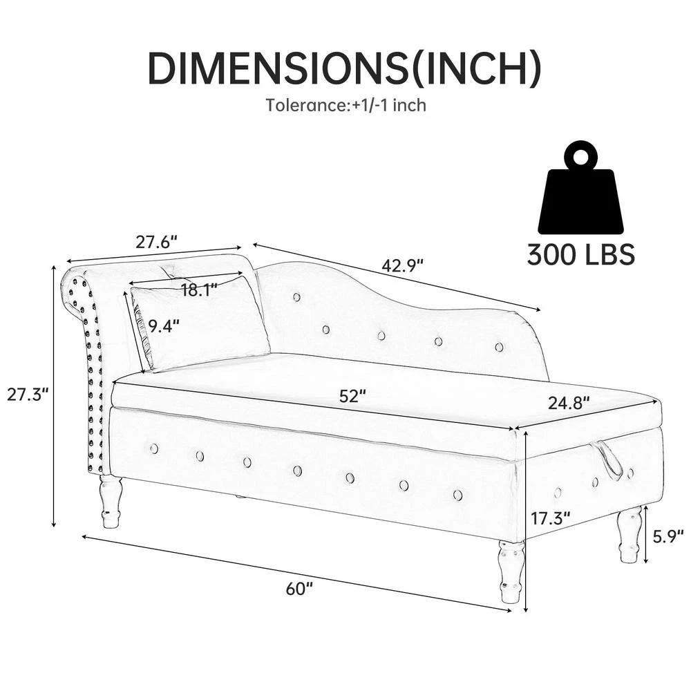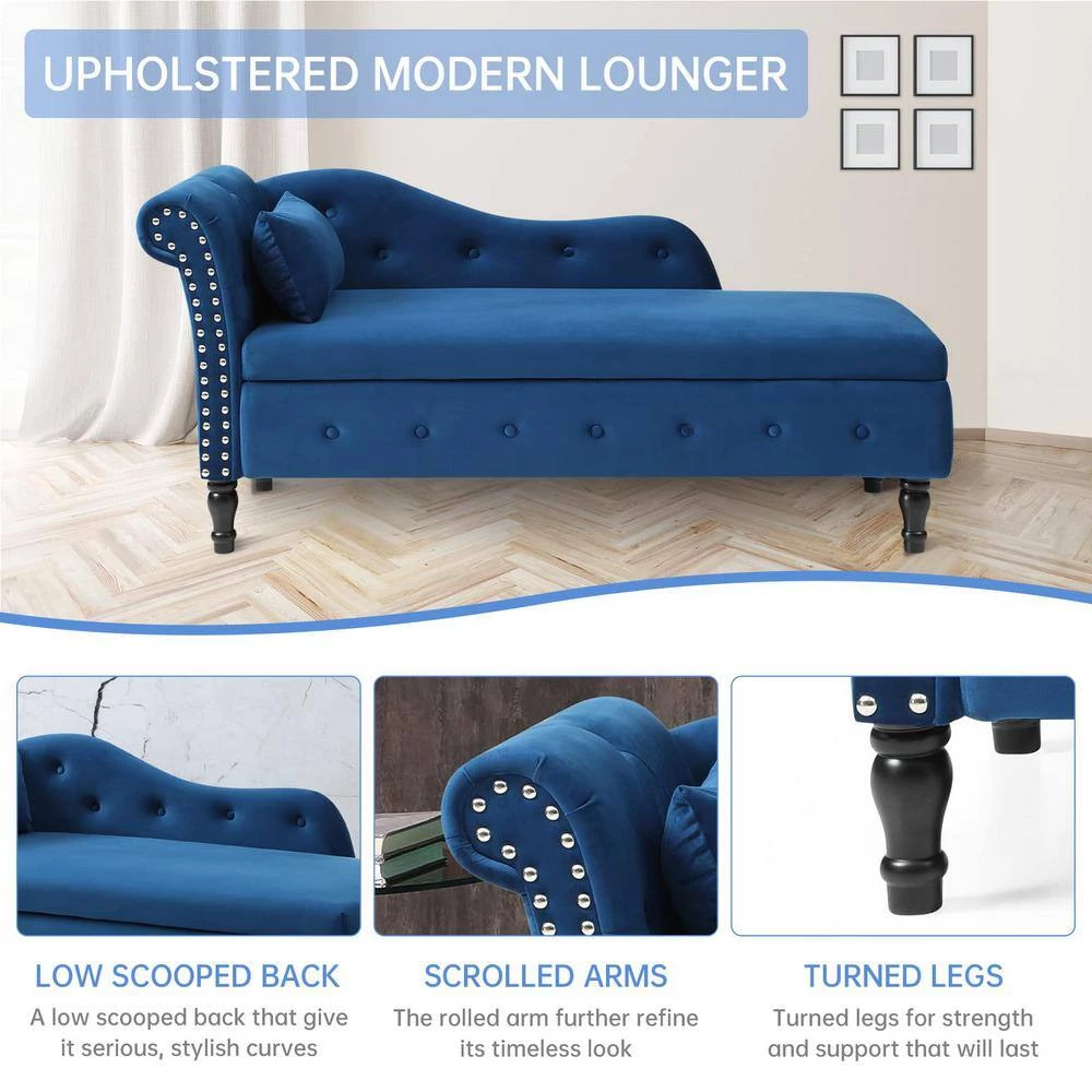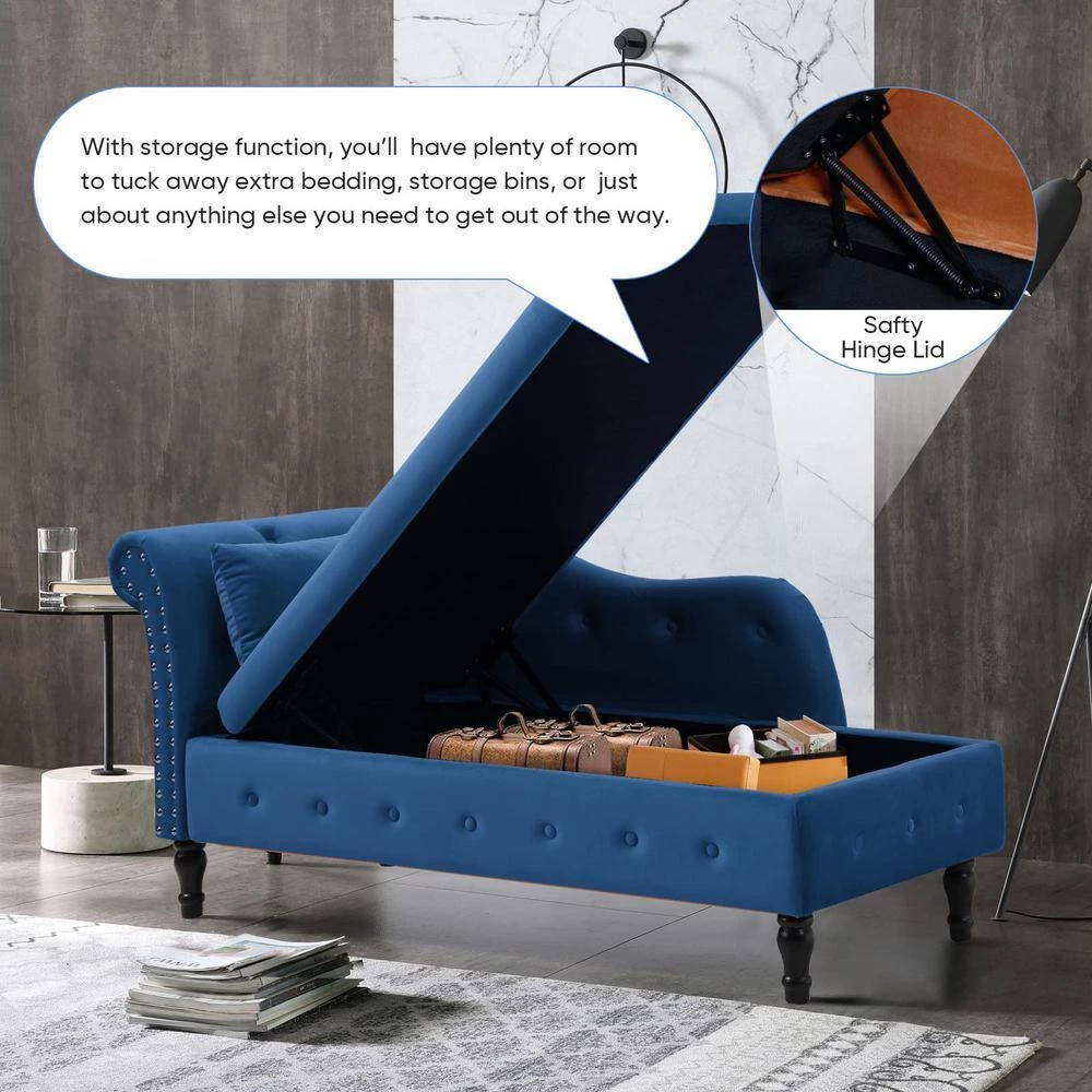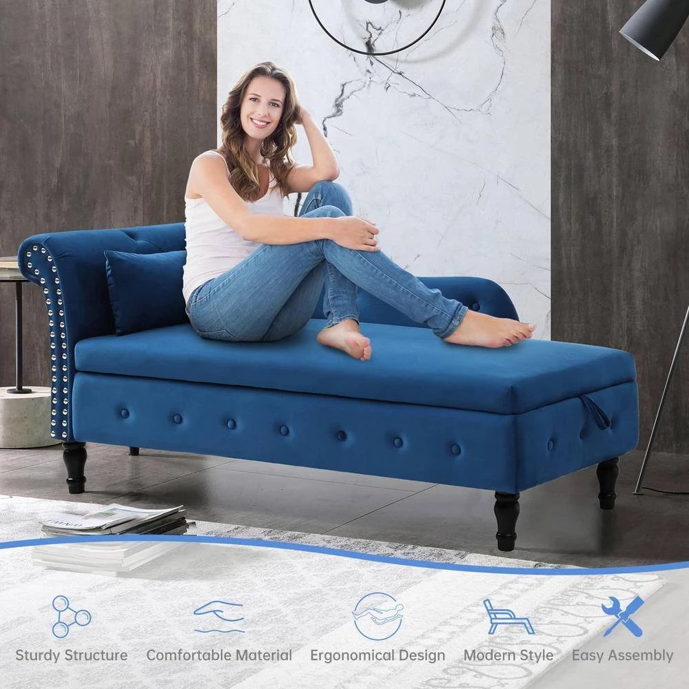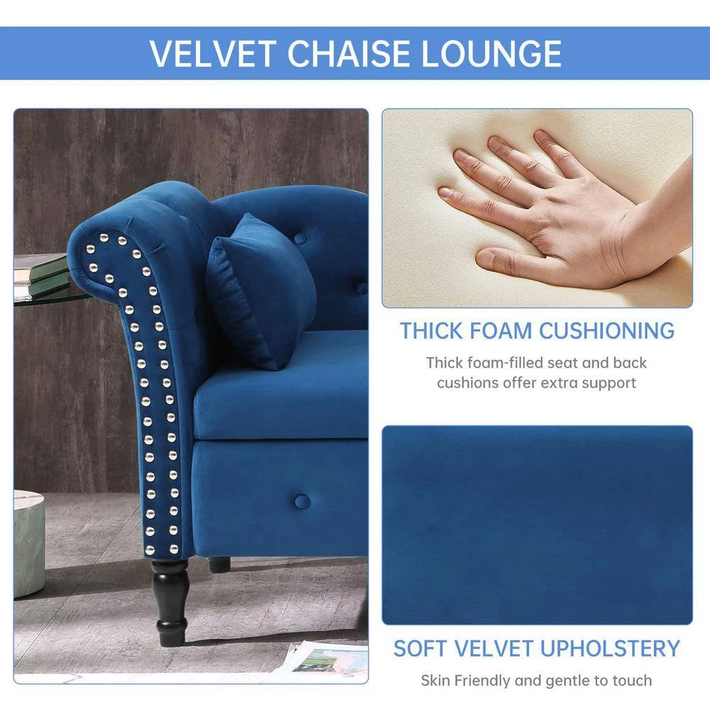 Our wood frame are made from solid wood which provides exceptional support and stability. And the four turned legs with french country appeal also provide the strong support for this chaise. This right-arm-facing chaise comes with a small pillow to help your neck or spine to release the pressure when you recline on this lounge chair sofa. Whether you’re reading a book, taking a nap or just thinking, it will be the favorite place to relax on. It showcases button-tufted detailing for an inviting feel, while nailhead trim is sure to make a statement. It also features rolled accents for a traditional touch, while turned legs lend some eye-catching appeal. This chaise lounge is the ideal addition to any room in your home, such as living room, bedroom, home office ect. Featuring soft velvet upholstery, this chaise lounge is skin friendly and gentle to touch. The interior is filled with high density foam, which brings class and lounging comfort to any room in the home. Comes with all necessary accessories and tools, it is easy and quick to finish the assembly process. It’s available in a variety of solid hues that are sure to suit your living room or bedroom color scheme.