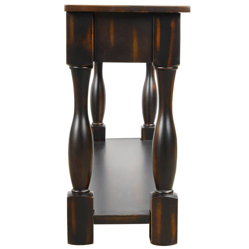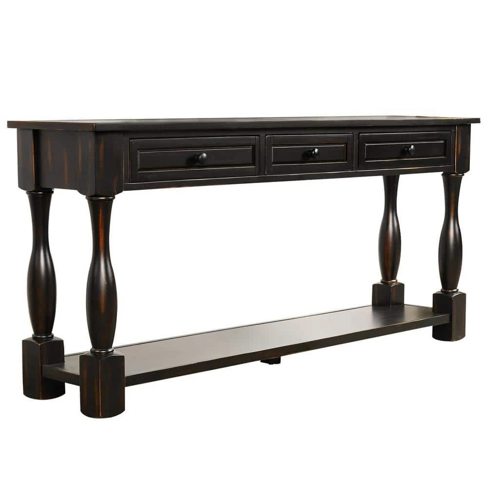 1. Designed in an extra-long, extra-thick Mediterranean style, this console adds a subtle elegance to your space and provides space to accent and display your belongings.2. Whether you need a light source, a convenient place to display nick-knacks, or you require extra storage with a small ft. print, this console table is the perfect match.3. Include 3-convenient drawer for storing important items such as keys, pens, receipts, etc. With an 18 lbs. weight capacity you can easily organize your life.