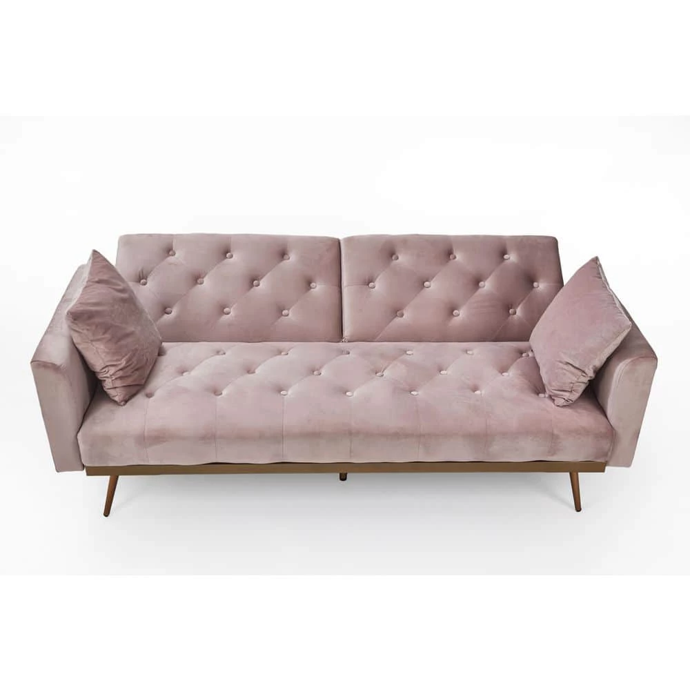 68.3 in. Width Pink Velvet Twin Size Convertible Sofa Bed With 2-Pillows by Unbranded