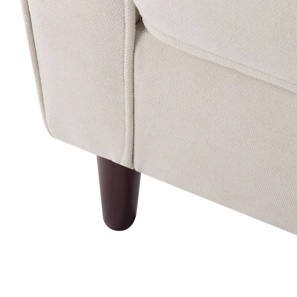 This sofa is an excellent option for your home, office, and guest room. Founded on a solid and manufactured wood frame, clean-lined silhouette with an angled backrest, tight square arms.Polyester blend(which varies in colour in the light and changes in colour at all angles of light) upholstery gives timeless style, while high-density foam creates luxuriously comfortable seating. Sturdy Solid wood legs add reinforcement and durability to the sofa.