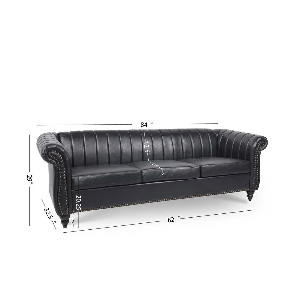 Add this perfect sofa to your home for both a cozy ambiance and to accent your living room. Sleek armrests with nailhead trim, scrolled arms and a Chesterfield-style design create a luxurious atmosphere. Sleek armrests. This 84-inch sofa is the perfect place for your friends or guests to spend a nice evening.