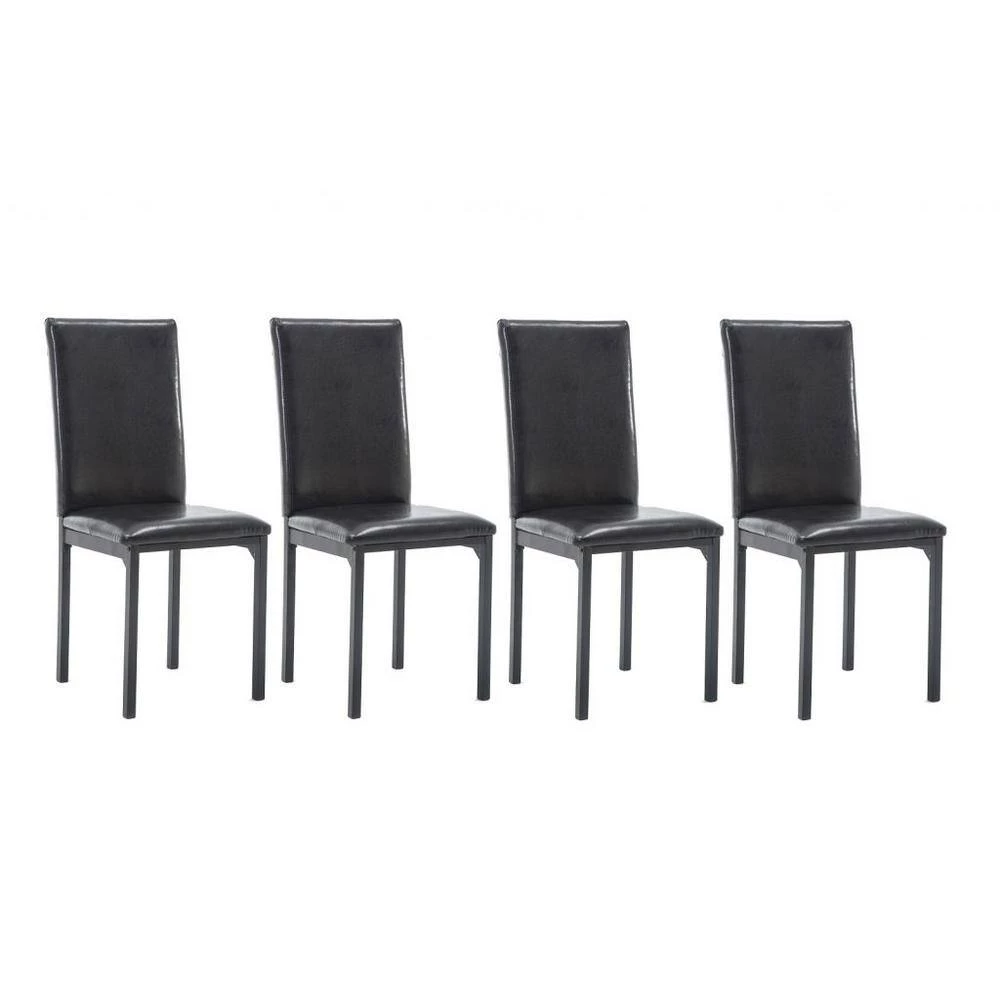 - Black metal frame and faux leather chair upholstery