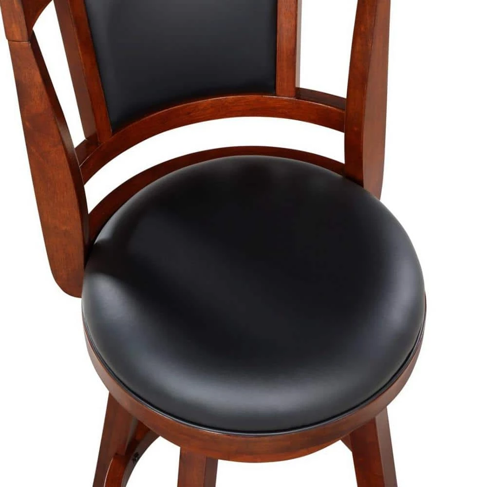 The Avianna Swivel Stool is a standout addition to your home bar, kitchen, or dining area. With its padded seat and back, this stool provides a comfortable seated experience and also brings home sleek traditional style. The hardwood frame comes in your choice of select finish options, while the leatherette upholstery looks elegant in black. A built-in footrest and 360-degree swivel feature offer convenient mobility.