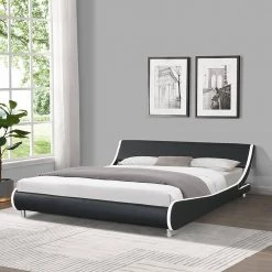 80.3 in.W Black White Wood Frame Faux Leather Upholstered King Size Platform Bed Frame by Unbranded