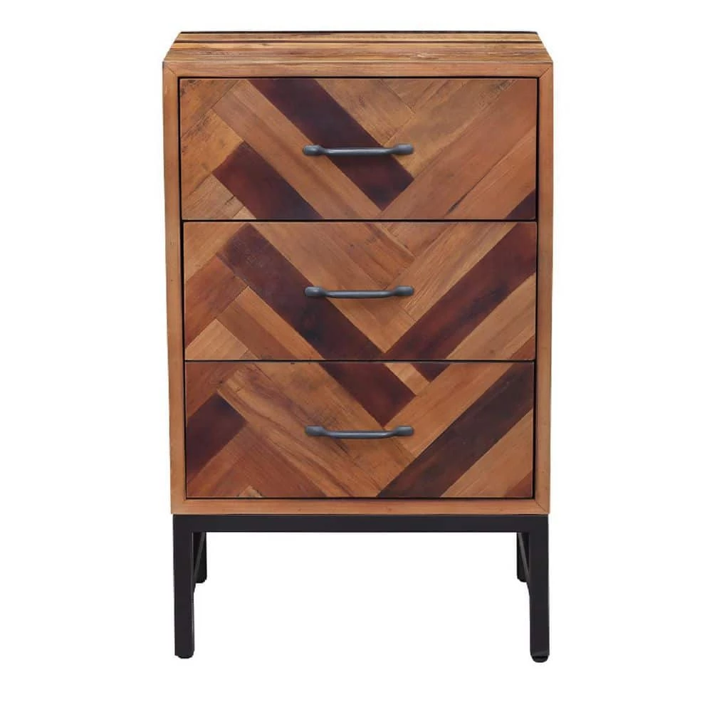 If you love designs that sit a little outside the ordinary, then look no further than the Benton Nightstand from Burnham Home. This piece is made from oak wood with an inlaid chevron pattern on the front. Three drawers open to provide plenty of storage for reading glasses, books, earplugs, and whatever other items you’d like to keep by your bedside. It rests on a durable four-legged base with protective rubber glides on the feet. There is no assembly required. A matching Benton Dresser is also available for separate purchase.