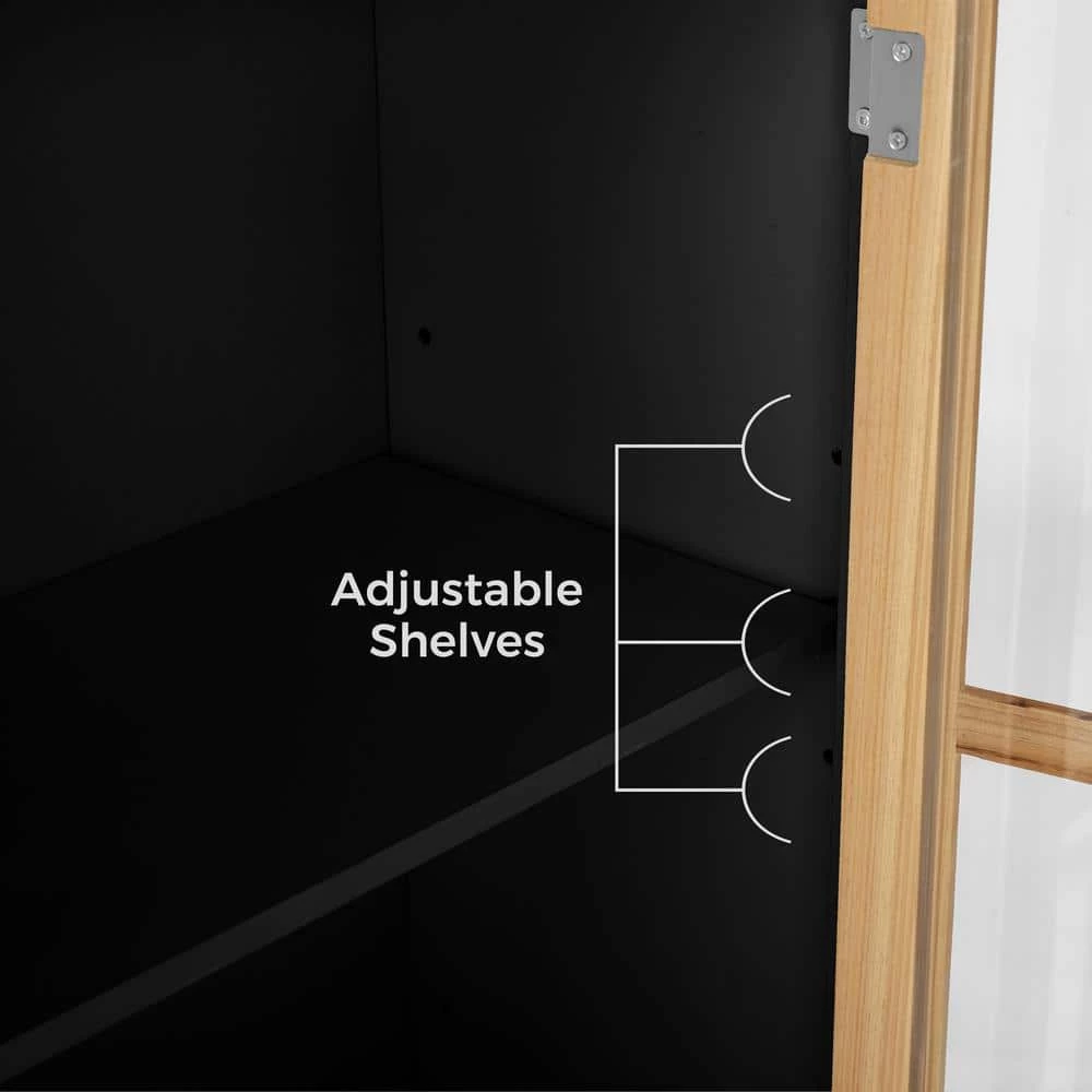 - Display cabinet with adjustable shelves: this locker has a total of 3 shelves, the bottom shelf is not adjustable and the upper shelf is adjustable, simply move the shelf pegs to the correct peg hole height to display your collection, this china cabinet has a weight capacity of 15 lbs. per shelf