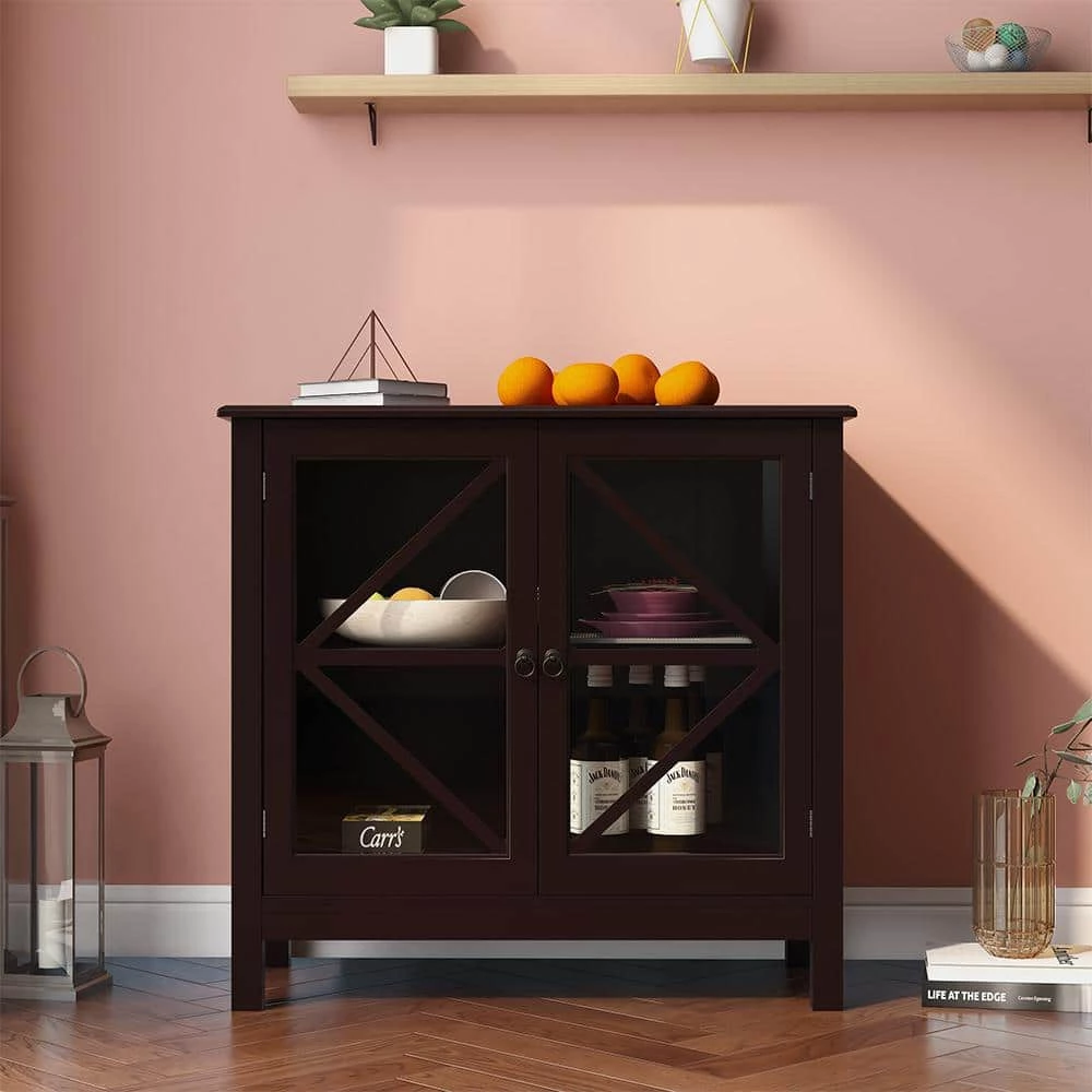 - Versatility this cabinet can be used as a sideboard in living room to fill in your favorite collections, or a buffet server cabinet in kitchen to put the tableware, bowls and dishes. With the glass doors you can show off as well as protect they from dust