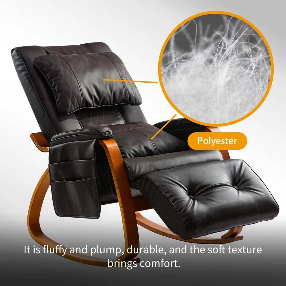 This comfortable rocking chair with massage function has an exquisite appearance and stylish design. It is mainly made of PU and wood material, with a strong structure. At the same time, it has good load-bearing capacity, the maximum load-bearing capacity is up to 330 pounds, and it is durable.