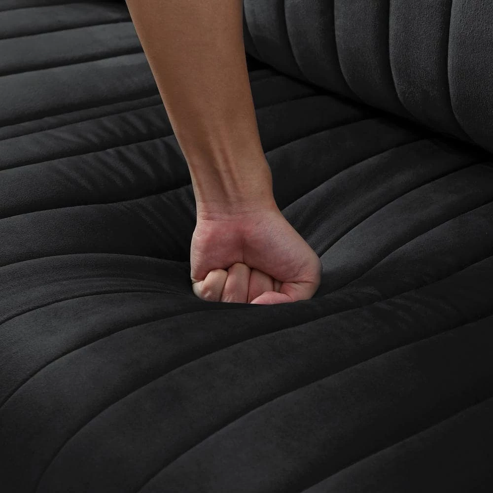 Fall back into a dream-like sofa with more than eight different combinations to make a unique home style your own. More than six color choices bring you a timeless luxury inspired home, join us and step into the warm elegance of this contemporary living space. Premium velvet cover, handcrafted channel tufting and opulent metal legs unite to evoke a feeling of monumental luxury.
