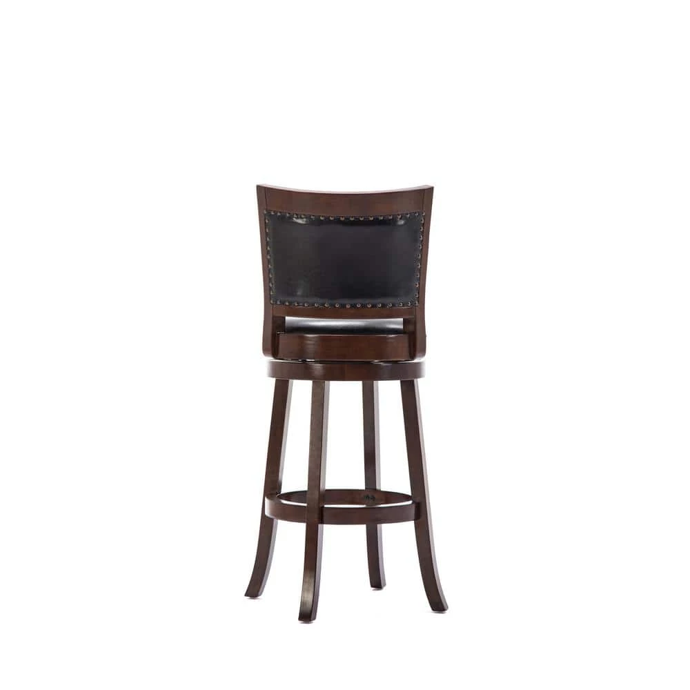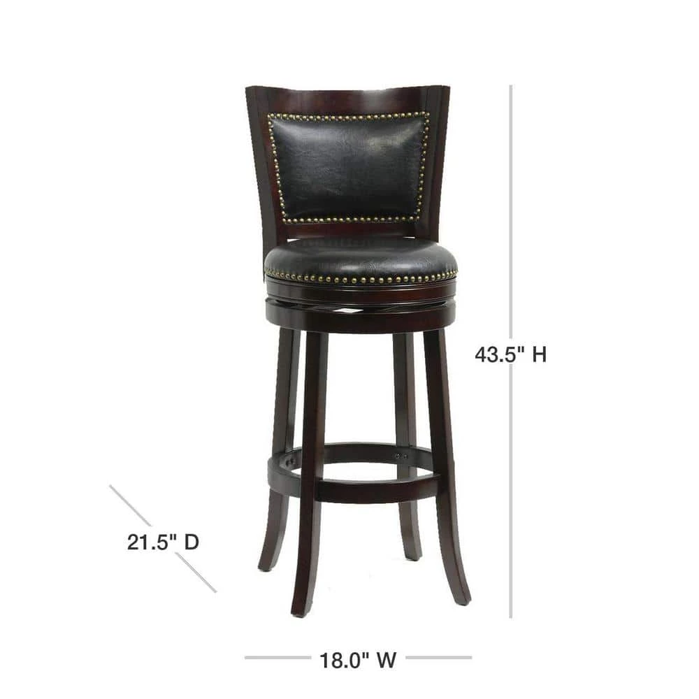 Upgrade the look of your home with the elegant Bristol swivel stool. Together, the sophisticated frame and succulent cappuccino finish combine with the embellished upholstery to manifest the perfect blend of style. The Bristol is composed of solid hardwood and engineered to perfection. Each leg has a strategic flare design that provides durability and balance to those who sit. The high-density foam used for the seat and backrest issue the maximum level of comfort. Additionally, the steel swivel plate features full ball bearing designs for an effortless 360° turn. Nominal seat height is approximately 30 in. Manufactured with precise attention to detail, the Bristol bar height stool embodies features that are most important when searching for furniture seating; durability, comfort, and style. This same stool is also available in standard counter height. Complete your look and search for Boraam’s pub tables to make a three or five piece set in a perfect-match color finish.