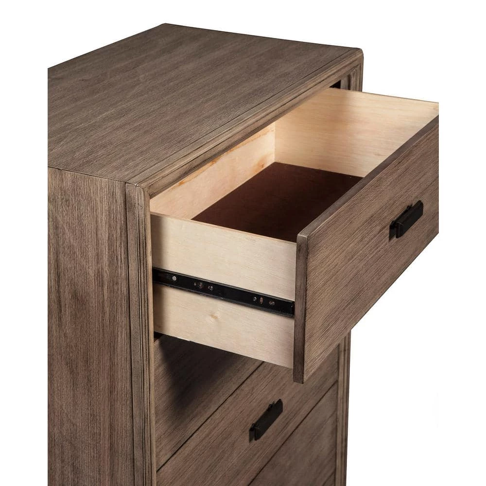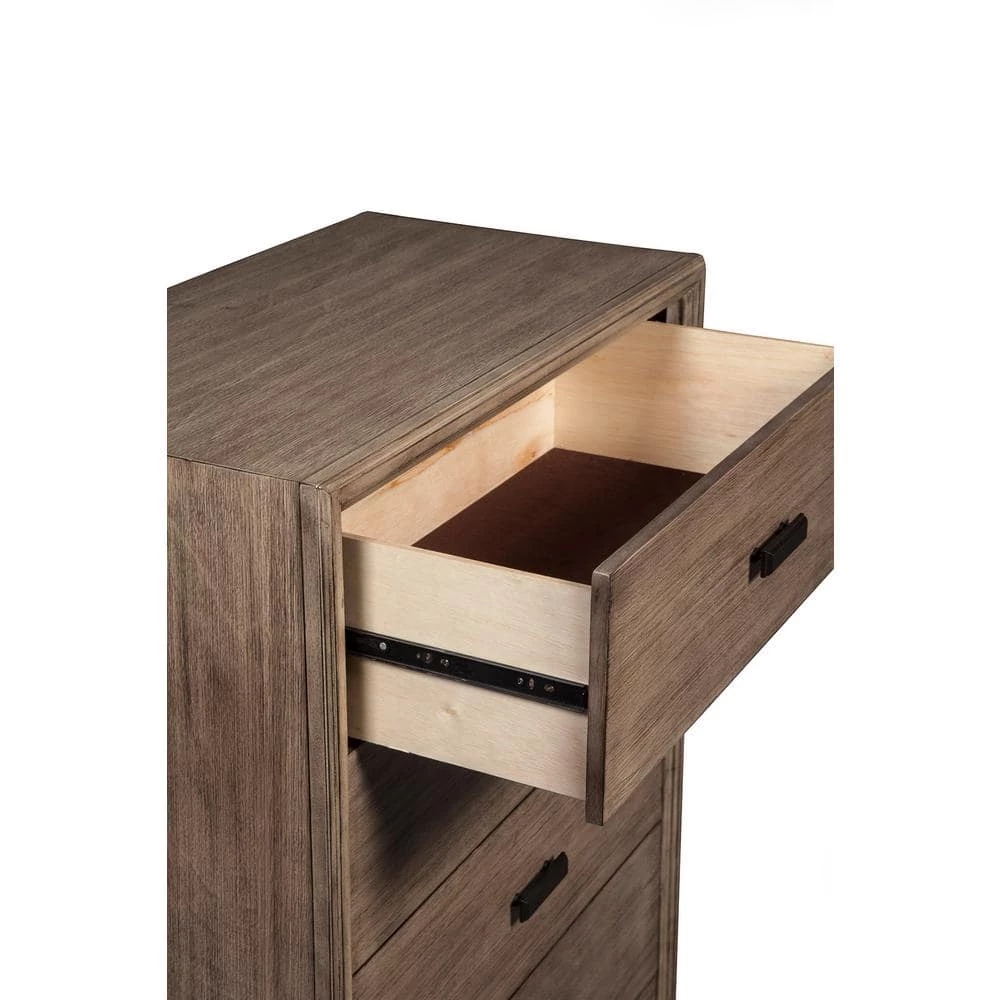 Style and elegance can be used to describe the Camilla wood nightstand. Trendy Antique Gray finish while crafted with Plantation Mahogany wood Solids & Okoume Veneer. 5 drawers provide storage. The matching bed purchased separately features a gorgeous upholstered headboard with nailhead trim that compliments the other pieces in the Camilla bedroom collection. Alpine Furniture knows that certain things never go out of style. Their furniture products are designed and constructed with classic English and/or French dovetailing that provides a sturdy result and an unbeatable aesthetic. For over 20 years, Alpine has provided its customers with a variety of wood products for the bedroom, dining room, and living room. Each piece is designed to meet the highest-quality standards of design, durability, and dependability. Customer satisfaction is of the utmost importance to Alpine. They have altered their designs over the years based on customer input in order to attain excellence in all areas.
