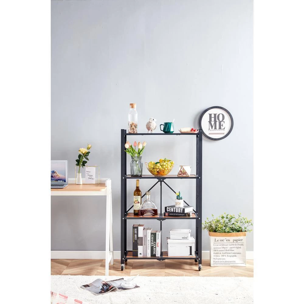 Made with good quality wood and metal frame, durable and stable. This display cart provides you extra place to meet your storage demands. With the rollers, help you move it easily to the place you want. Also it can be folded if you don’t need it, which won’t waste many place in your home. The modern design combines with the simple style, easy to your home surroundings, and you can place it in kitchen, bathroom, living room and other rooms.
