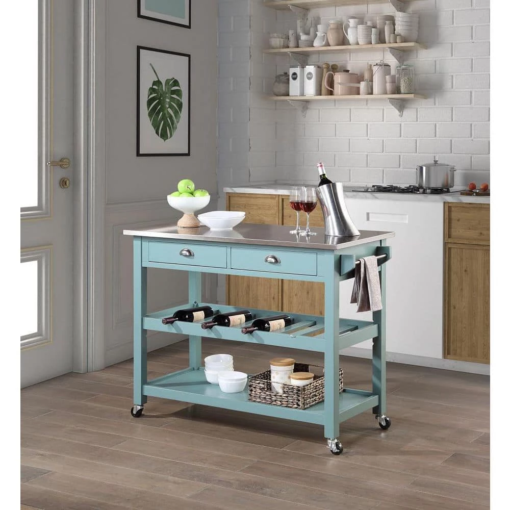 - Features two drawers with a stainless steel handles to provide an enclosed space to keep your kitchen essentials