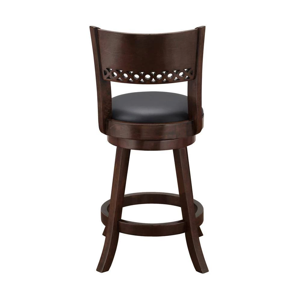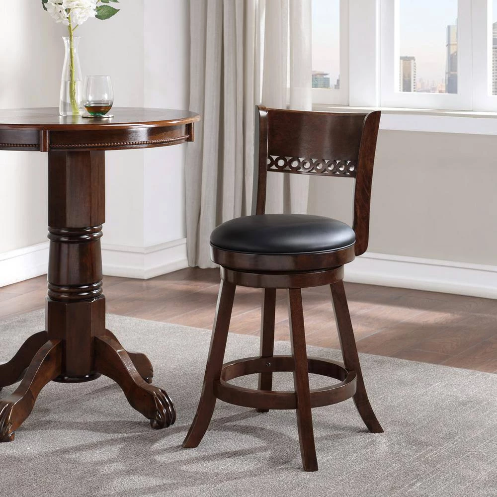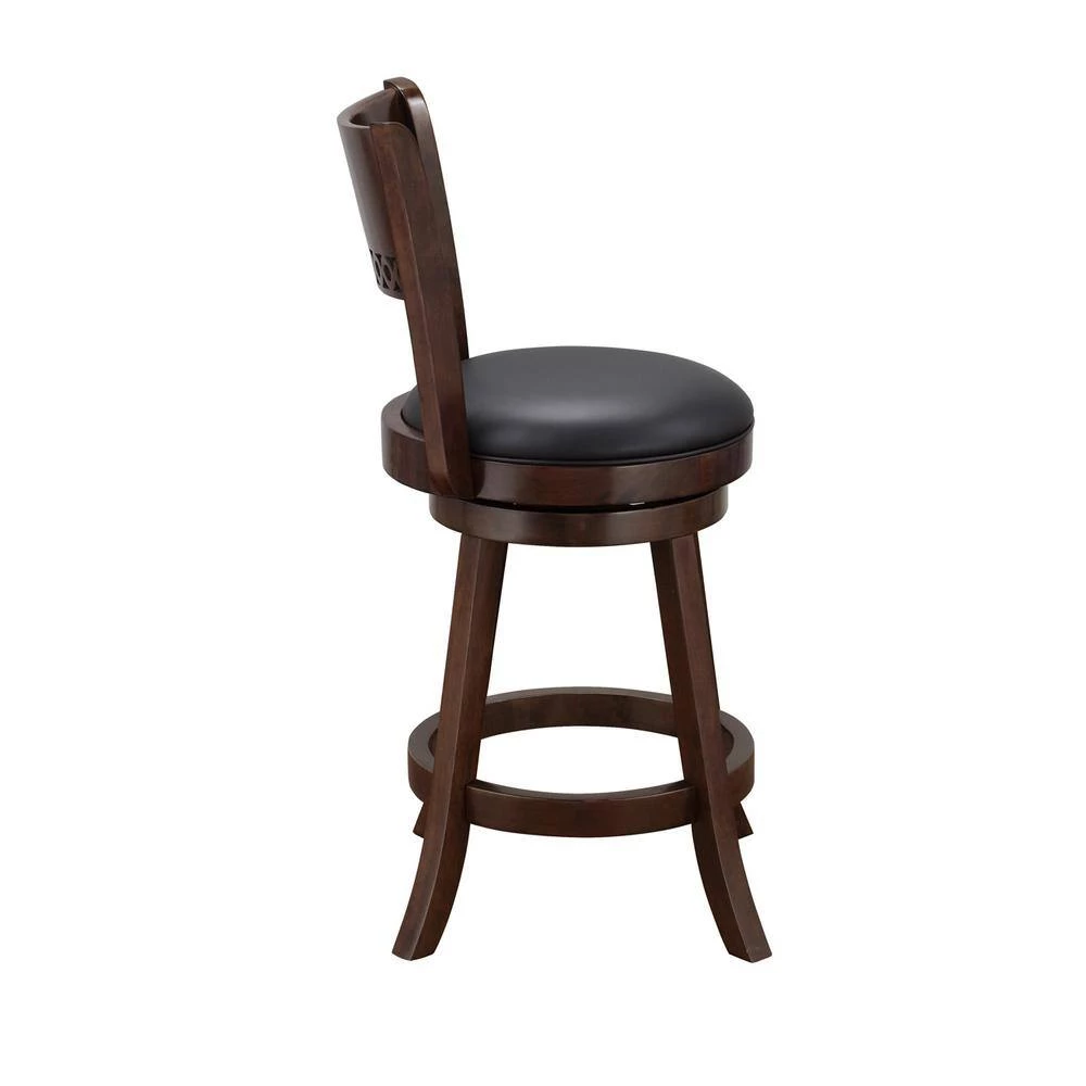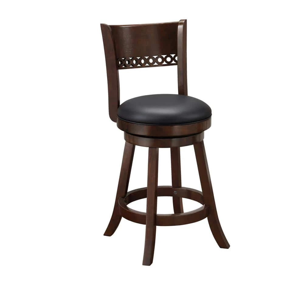 The Boraam Durham Swivel Counter Stool is constructed with plywood, rubber, and PU. The PU seat has high density foam that ensures comfortable seating over long periods of time. Footrest also available for comfort and relaxation. The half-back and circle design provides a unique look to your home or bar area. The Cardiff Swivel Counter Stool is available in two finishes; distressed sandrift and cappuccino.