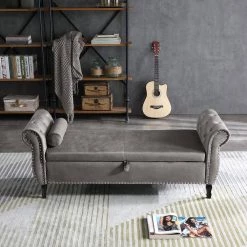 63 in. W x 22.1 in. D x 24 in. H Gray Velvet Tufted Storage Bench With A Pillow by Unbranded