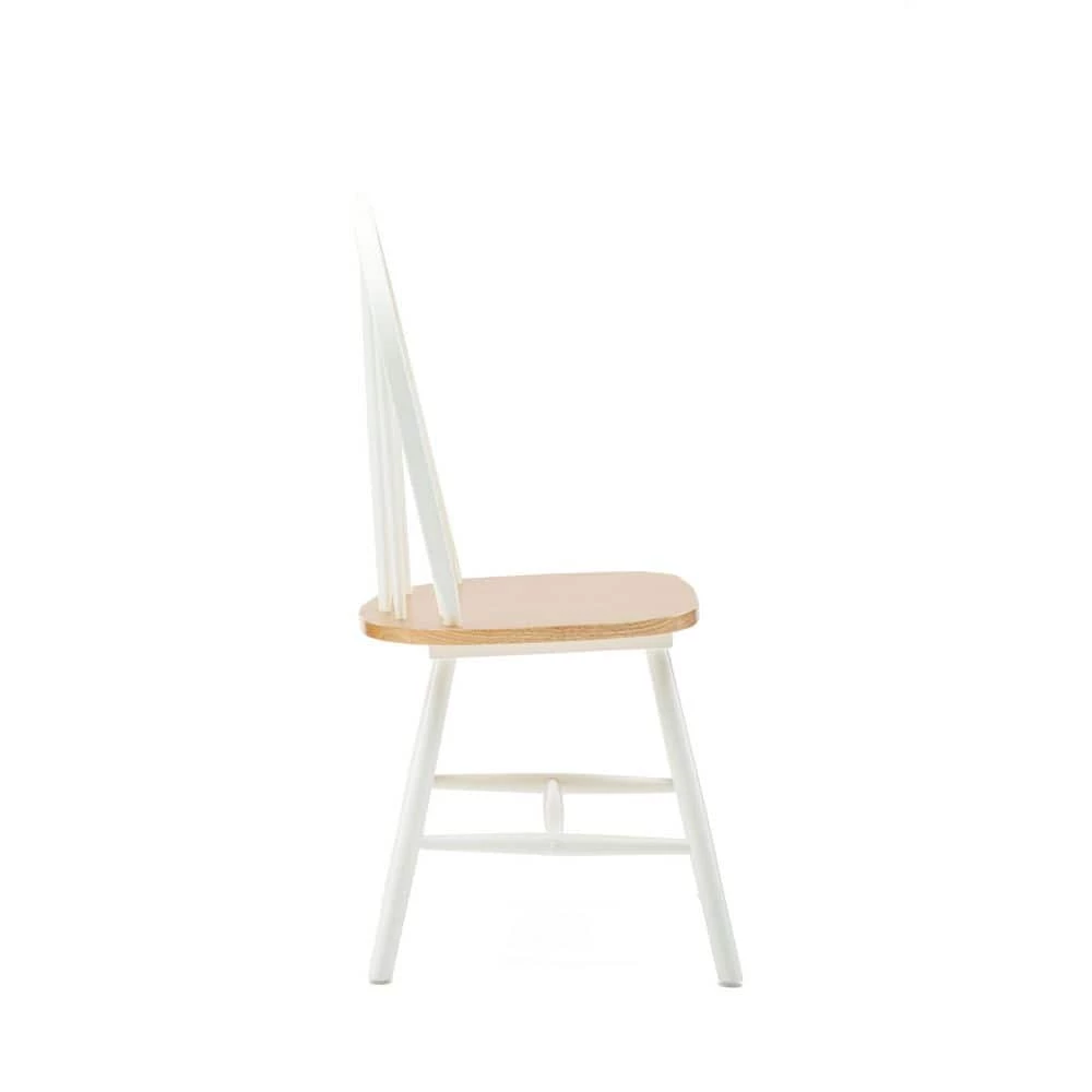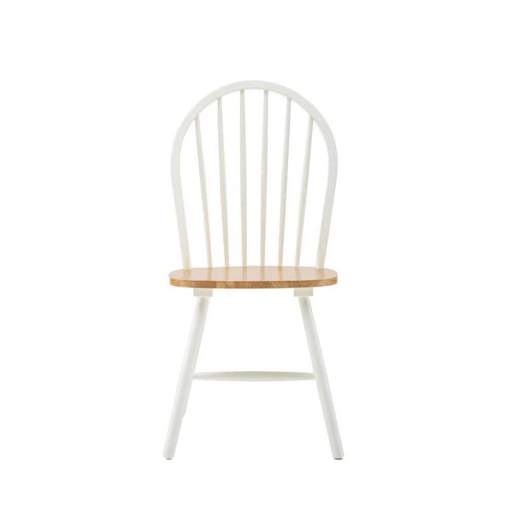 This delightful Farmhouse Chair captures the simplicity and elegance that makes farmhouse style an enduring classic. The Windsor-inspired chairback has a classic spindle design. It comes in a two-toned finish, with a glossy, polished wood seat which is shaped for comfort. This dining chair is made from solid hardwood to ensure it can withstand years of family dinners and Sunday brunches. Choose your preferred color combination: White & Natural or Black & Cherry. Comes in a set of two matching chairs. *Please note that the listed product weight is for a single chair*