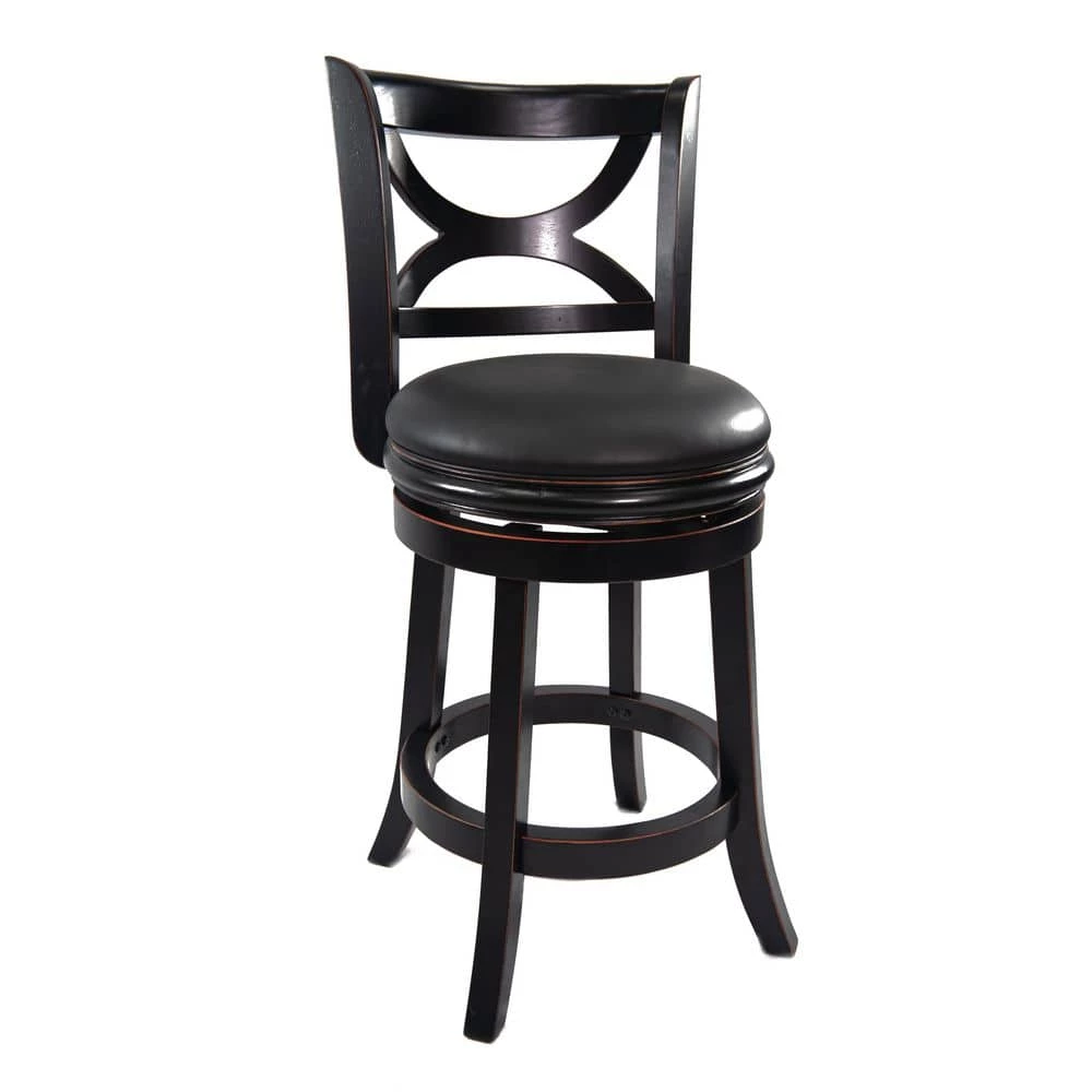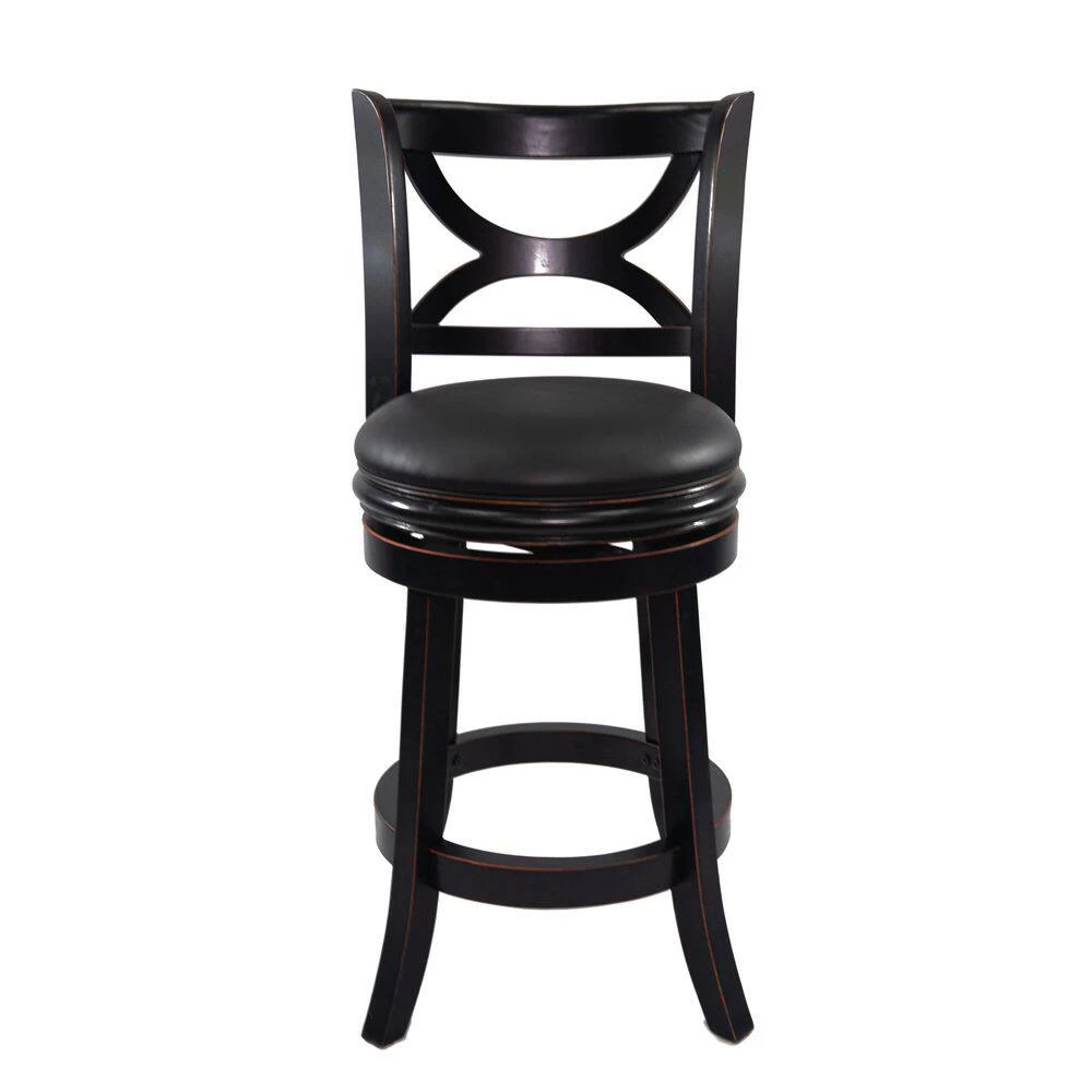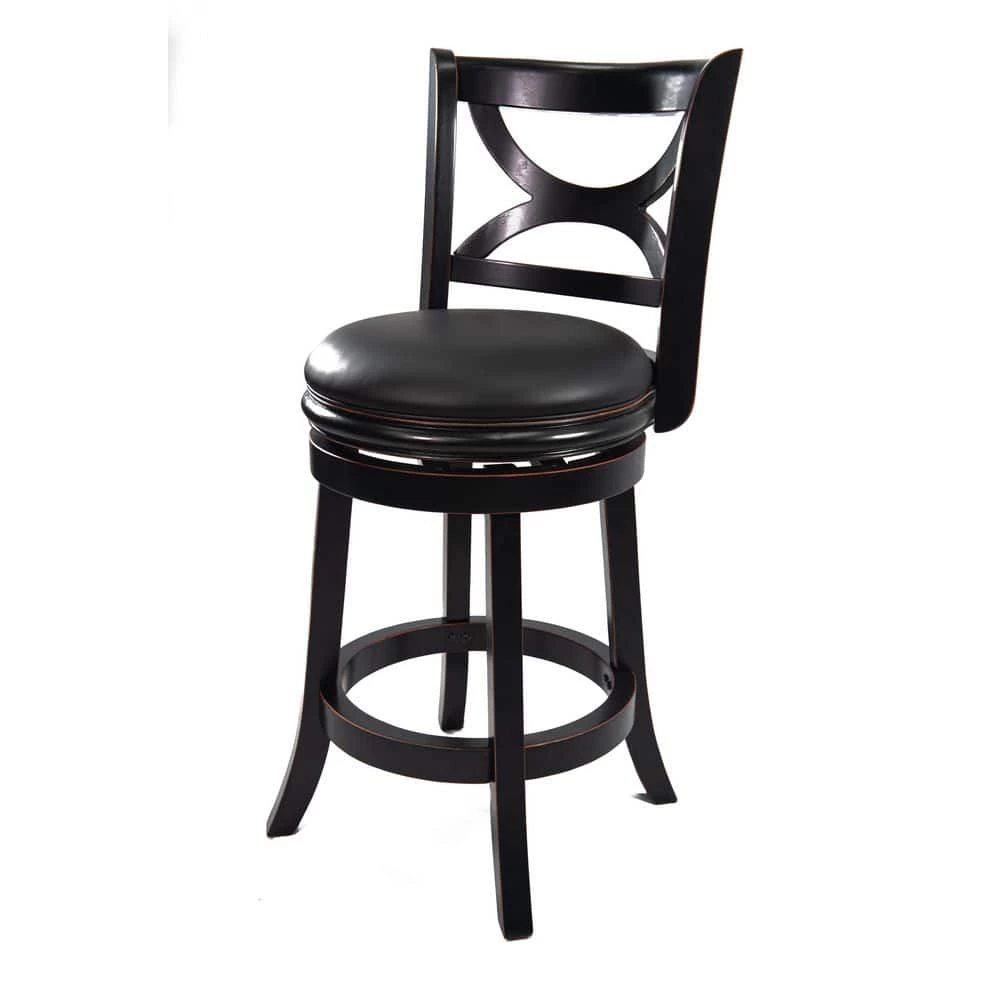 This beautifully constructed swivel stool is the perfect addition to your home. The attractively designed backrest plus the plush black seat, exuberates sophistication. Guaranteed to seamlessly merge with any style kitchen, basement, game room, or bar. Reliable, durable seating means that it is crafted from solid hardwood, made with precision construction, and exerts a ball-bearing 360°steel swivel plate, and that’s only one way to define this stool. Performance tested by the leading testing facilities that are recognizable worldwide, purchasing this stool is a smart choice and a wise investment. Additionally, the sleek faux leather seat upholstery clothes a high density foam cushion, so you can go ahead and dismiss any rising doubts because kicking back on this stool does not mean sacrificing your comfort. Available in 2 different sizes and 2 delectable color finishes. Search for Boraam’s pub tables, and make the perfect 3 piece set.