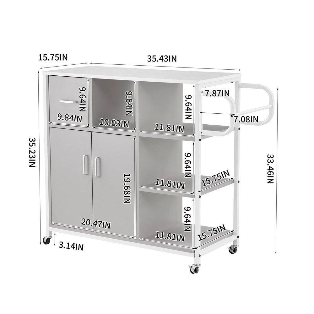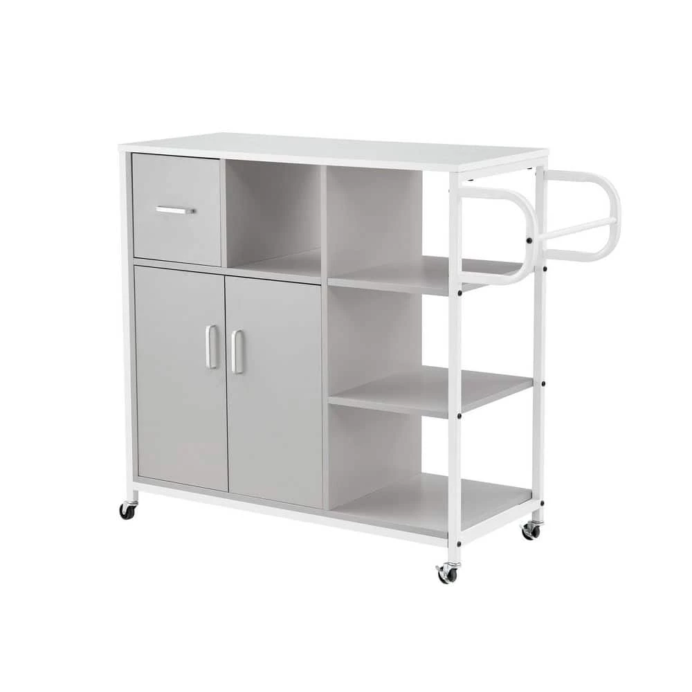 This is our classic high quality kitchen cart, perfect for your kitchen or dining room. Cabinet space for small appliances, pots and pans, etc. Spice rack and towel holder for added convenience. In addition, the simple but graceful appearance is very charming.