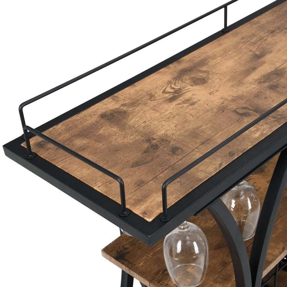Round out your entertaining space in versatile style with this handsome industrial-inspired bar cart. The clean-lined design is crafted from a powder-coated metal tube. while stemware racks and bottle holders keep your items easily accessible and neatly organized. 1. BOTTLE RACK AND WINE GLASS STORAGE: this bar cart features three levels for storing wine or placing trays, with 11 bottles and16 wine glass racks. 2. MOBILE SERVING CART: it rests a top smooth-rolling casters, which offers easy mobility. 3. EASILY TO BE ASSEMBLED: with very clear assemble instruction, necessary hardware and tool for easy set up. 4. STURDY CONSTRUCTION — Crafted in metal frame construction for increased durability as well as ensure the shelves on this buffet cart can hold a considerable amount of weight.