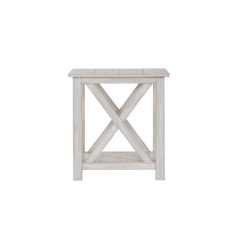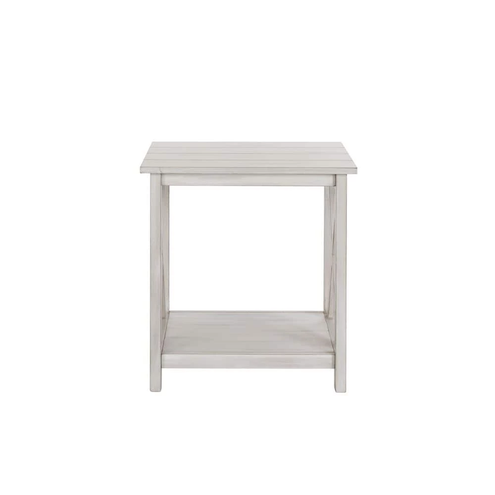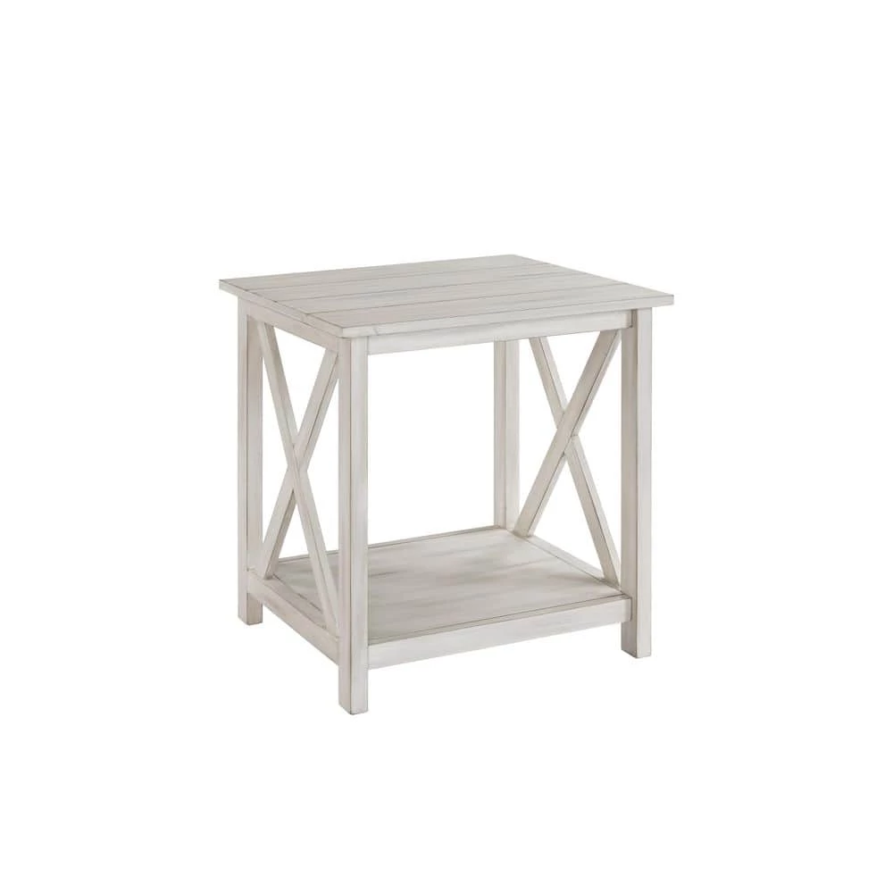 The Jamestown End Table’s antique white finish and “X” details give it the look and feel of a piece you picked up from an antique shop. This accent table is made from a combination of medium density fiberboard and solid wood. Store books or magazines on the lower shelf and display decorative figurines, vases, and potted plants on the tabletop. If you want to design a home full of farmhouse comfort, be sure to check out the other Jamestown living room and dining room furniture from Boraam.