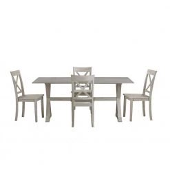 Jamestown 5-Piece Antique White Wash Wood Dining Set, Table Plus (4-Chairs) by Boraam