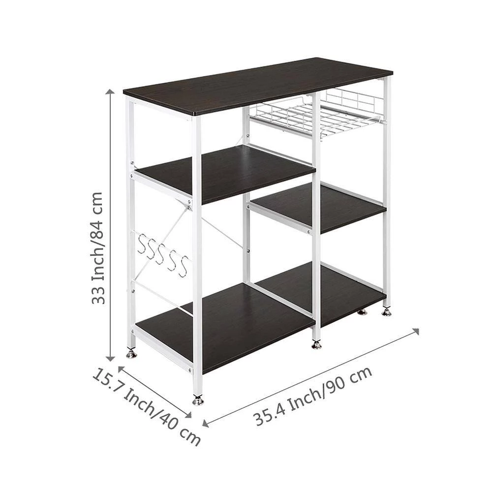 Overall Size: (35.4 in. L x 15.7 in. W x 33 in. H / (90 in. L x 40 in. W x 84 in. H) cm Microwave Standing 35.5 in. 3-Tier 3-Tier Microwave Stand Storage Kitchen Oven Baker’s Rack Workstation Shelf, Modern, Simple and Elegant. A perfect storage rack for your home, ideal for keeping things shipshape and saving space of your kitchen.