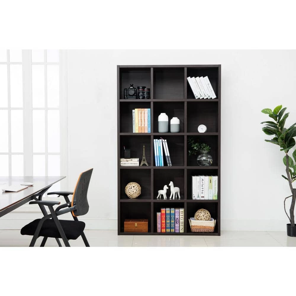 The Kline Bookshelf feeds your inner bookworm with style. A dark finish and clean lines bring a modern touch to your home. Personalize your living room using its 15-cubes for books, plants or photos.