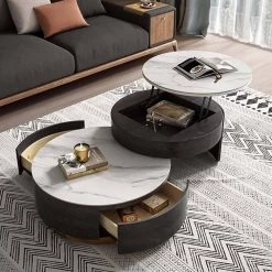 39.4 in. White MDF Lift Top Extendable Rectangle Coffee Table with Storage by Unbranded