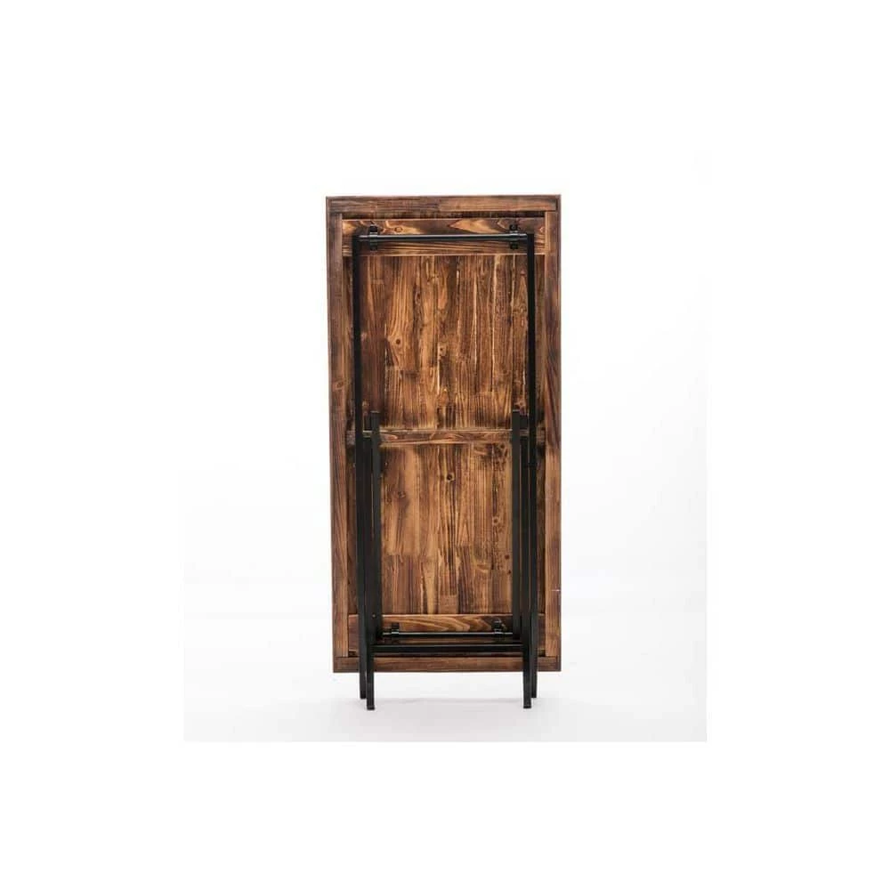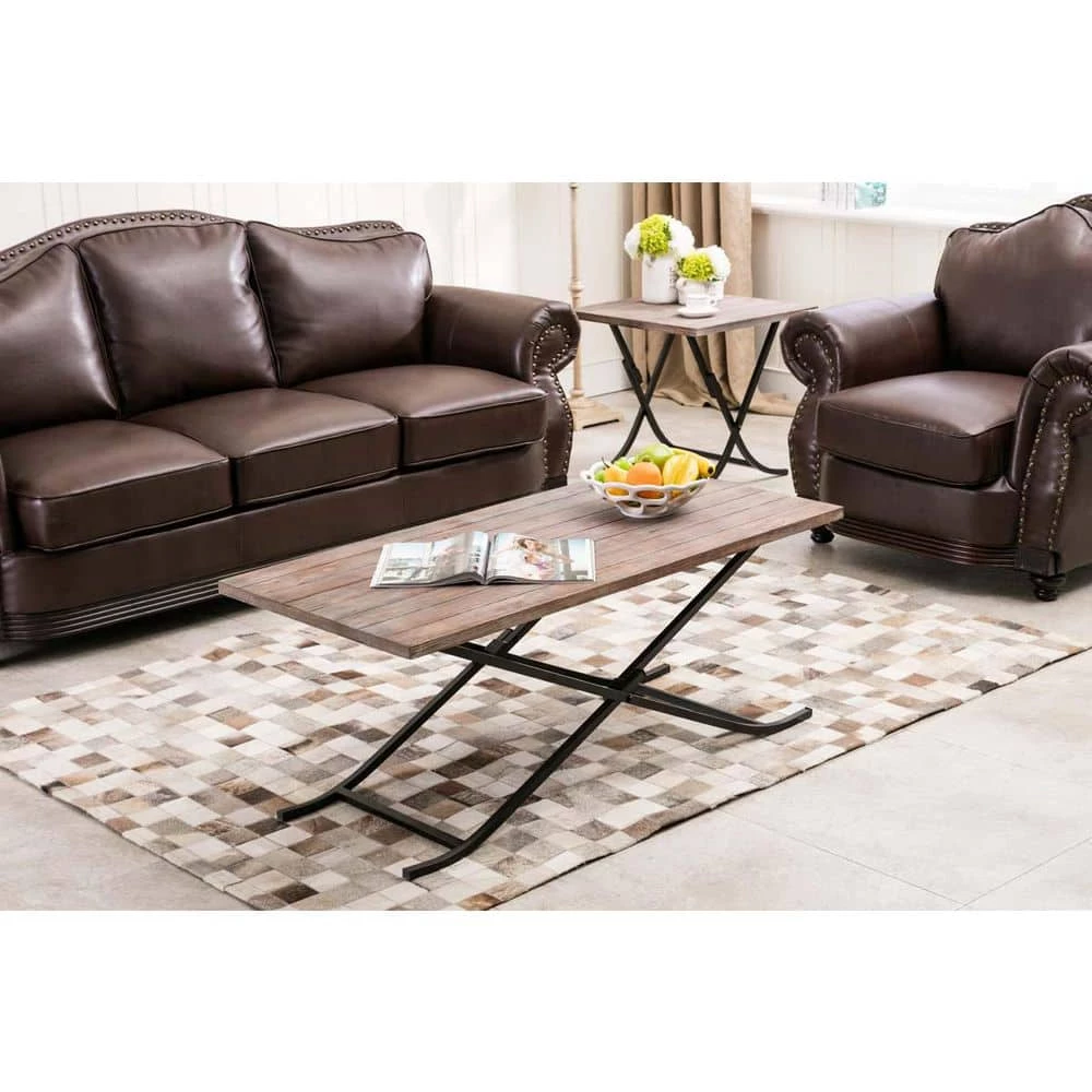The Miriam Cocktail Table’s weathered fir wood tabletop brings warmth and organic style to your living room. This wooden coffee table rests on black iron legs, creating a delightful contrast of materials and colors. The legs fold up for easy moving or storage. Outfit your living room with the matching Miriam End Table (available sold separately).