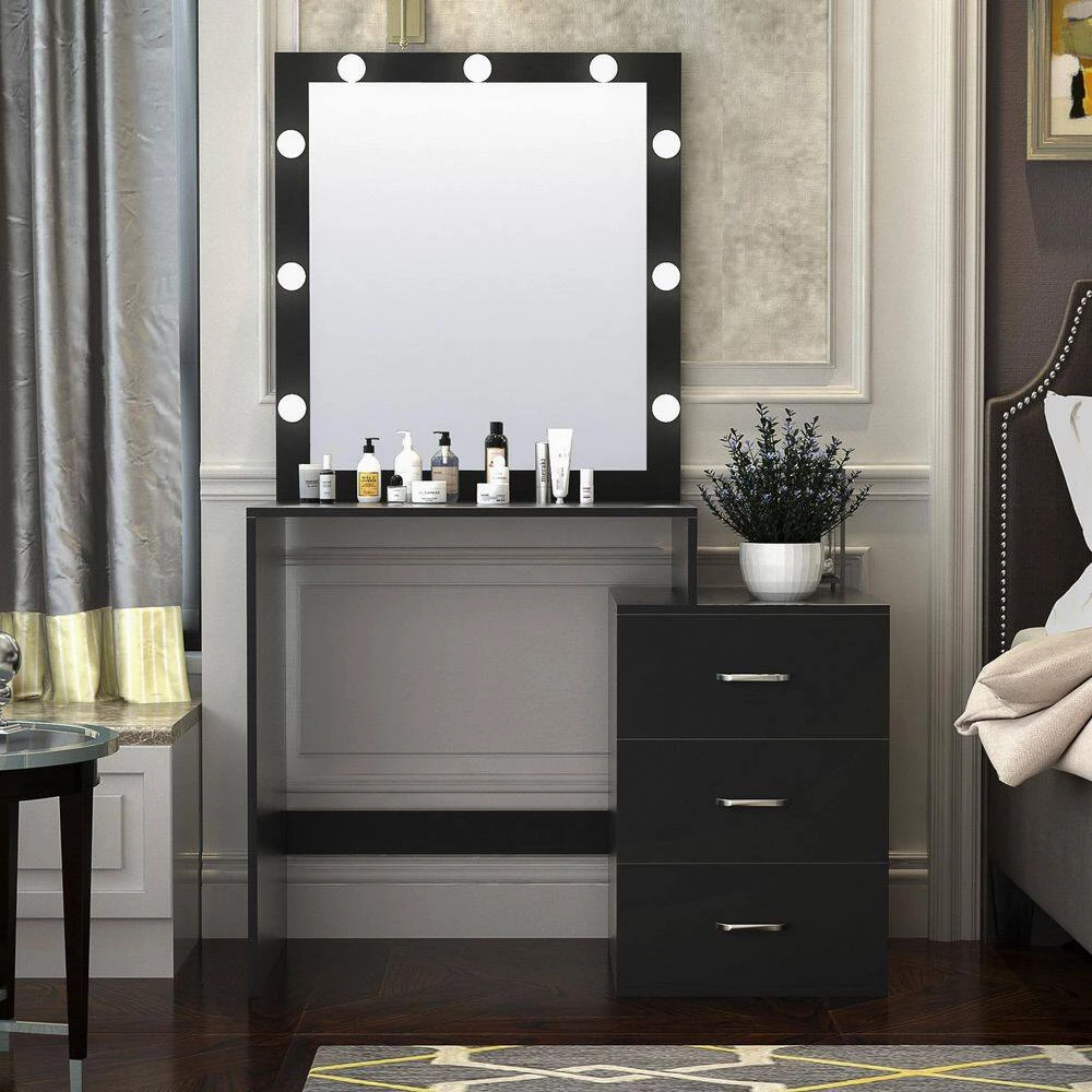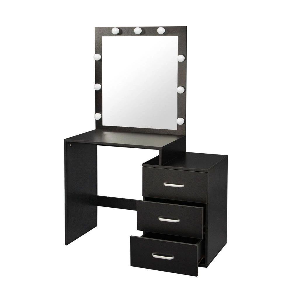 Made of 15 mm particle board, this modern dresser is very durable and easy to clean. The dresser comes with 3 drawers providing you with plenty of storage space for jewelry, makeup tools, other small items, etc. As well as a 9 LED bulb mirror with dimmable light that gives you three different light colors: warm/natural/cool, the modern design of the dresser complements any decor and is the perfect dressing table for a bedroom, girl’s room, dressing room or living room.