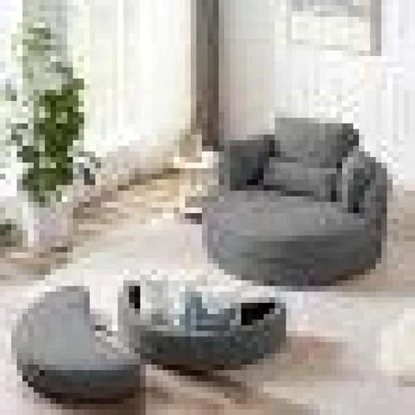 Reveal wondrous moments with Swivel Accent Barrel Modern Dark Grey Sofa Lounge Club Big Round Chair. Made with Storage Ottoman Linen Fabric for Living Room Hotel with Pillows, thoroughly enjoy each seating moment from either a reclining or upright position. Divulge is a streamlined modern armchair padded with dense foam and finely upholstered for a soft ambiance throughout. Fashioned for seating adventures filled with simple grandeur, the Divulge armchair is perfect for living, lounge, or reception areas.