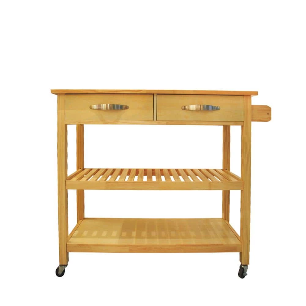Kitchen cart in natural wood frame with wood natural top make the unit high-grade looking. And with wheel, which can be easy to move the place you want. What’s more, with two drawers for utensils and tools. And 2 larger capacity open shelves to store more vegetables or fruit other kitchen good.