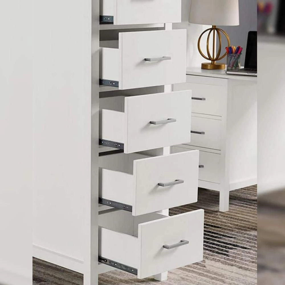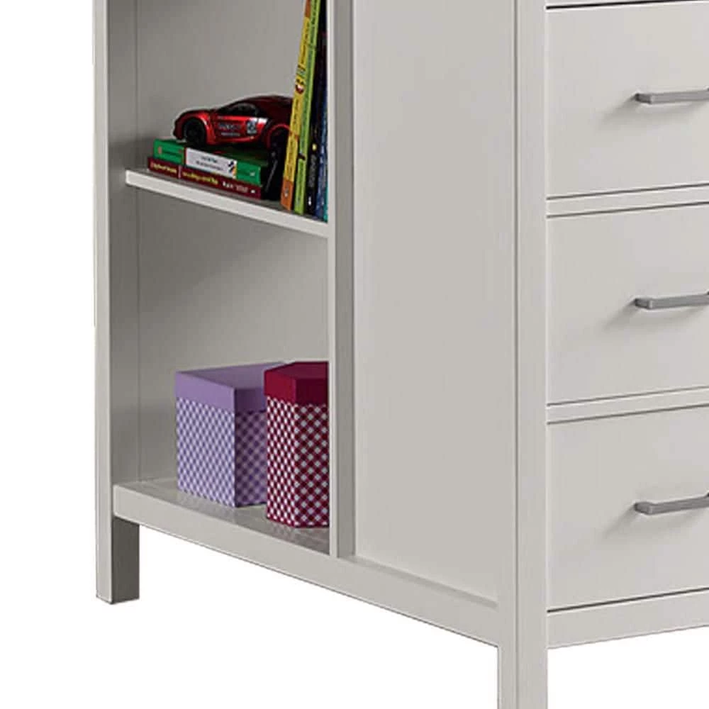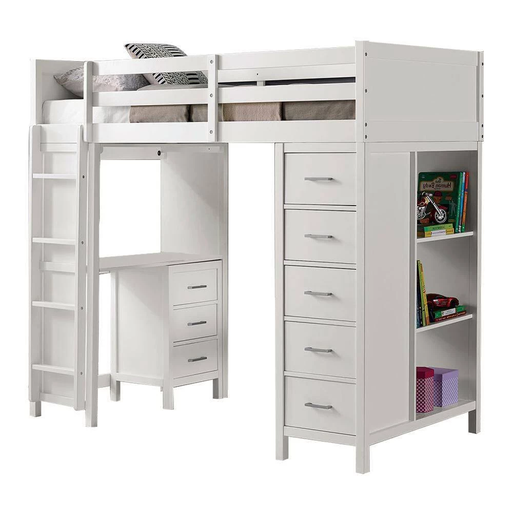 This may be the most efficient twin loft bed ever designed. And it’s cute! Sure, there are the standard upper bunk-style features such as the stationary ladder and guardrail but it’s also got a desk to sit at beneath, six spacious drawers, and an adorable scaled down mini dresser that offers three additional drawers. Splendid!