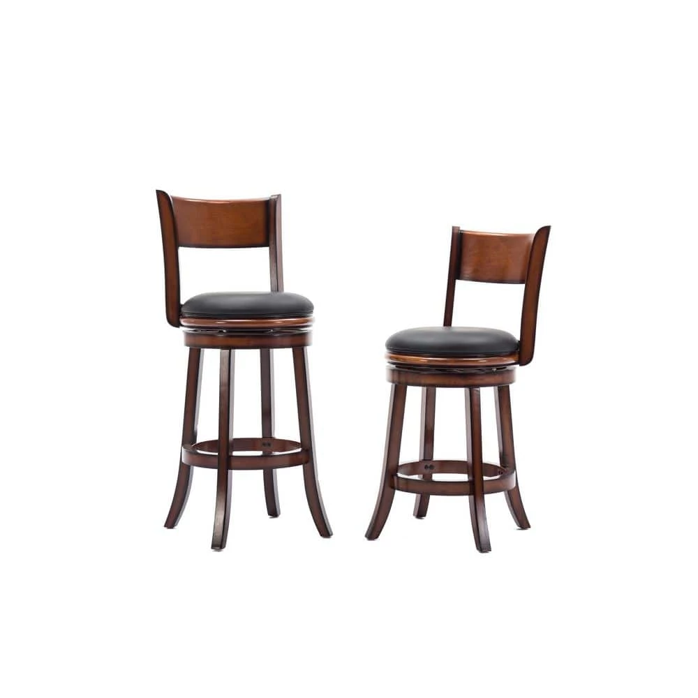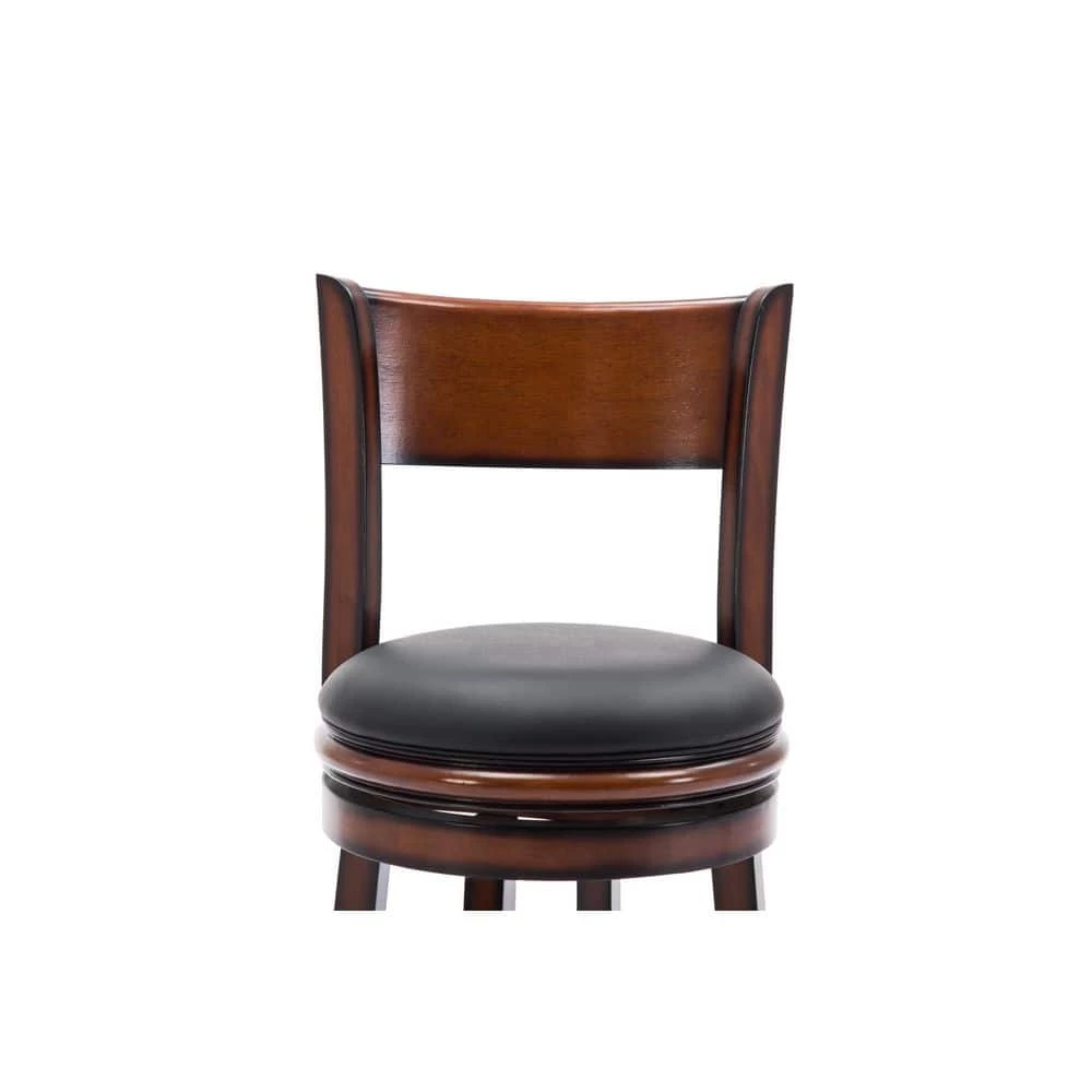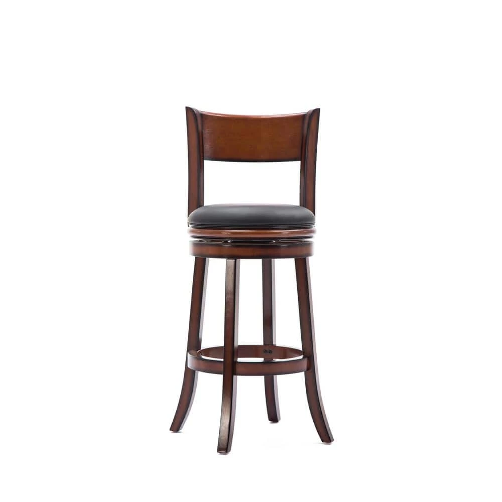The Palmetto Swivel Stool is the next evolution of comfortable pub seating. Not only is this traditional swivel stool crafted with a built-in backrest, footrest, and high-density foam cushioning, but it also comes with support and durability features to last you a long time. Flared legs, a double-seat apron, stability stretchers, and a steel ball-bearing swivel mechanism all promise longevity. Not to mention, the Palmetto is also performance tested by leading worldwide testing facilities. The solid hardwood frame and faux leather upholstery are available in your choice of select color combinations, so you can pick the right match for your home bar, kitchen, or game room. Available in counter or bar heights.
