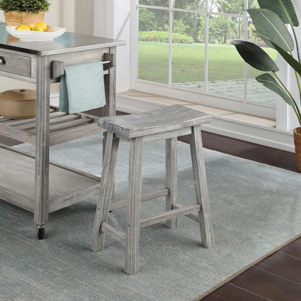 Bring attractive rustic style to your kitchen island with the Sonoma Saddle Counter or Bar Stool. Our Sonoma saddle stool is made from solid rubberwood. This environmentally friendly wood is prized for its hardiness and attractive grain. We use a multistep wire-brush finish which enhances the natural beauty of the wood even more. It’s built for long-lasting stability and comfort, thanks to a wide, curved saddle seat and built-in footrests. Choose from our selection of available finish options: Barnwood, Chestnut, and Storm Gray. Seat height available in counter (24 inch) and bar (29 inch).