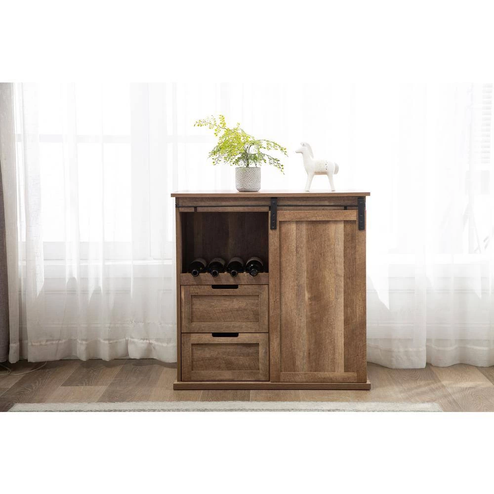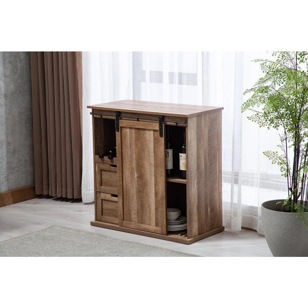 You may not have a wine cellar in your home, but you can still keep your vintages ready for use with the Weston Sliding Barn Door Wine Cabinet. A built-in rack holds four bottles of wine, while two drawers provide room for storing corkscrews, aerators, and stoppers. Keep decanters and wine glasses hidden in the cubby areas behind the door. The wood’s natural finish and sliding barn-style door give this cabinet the look of a handmade, reclaimed piece. For other farmhouse-inspired furniture, check out the Weston Media Cabinet from Boraam.