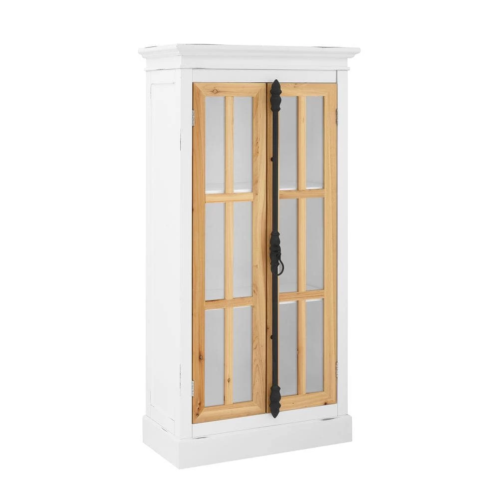 - Black iron industrial style door handle: inspired by the popular farmhouse style trend, the natural wood panel front doors have an eye-catching black iron door handle for a modern, industrial look. the main cabinet is available in black or white paint finishes with a distressed look which showcase the farmhouse detailing on the front of the storage cabinet