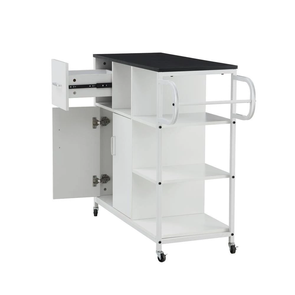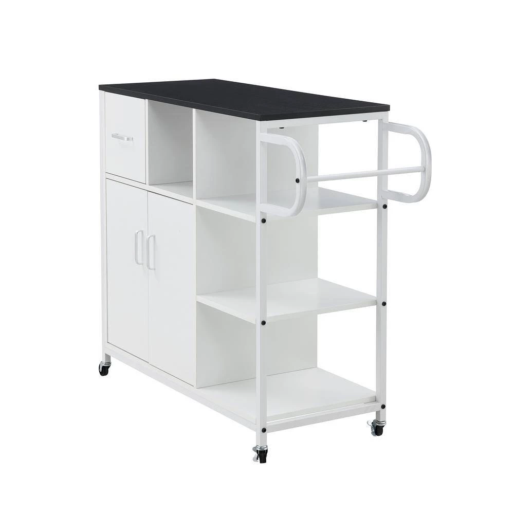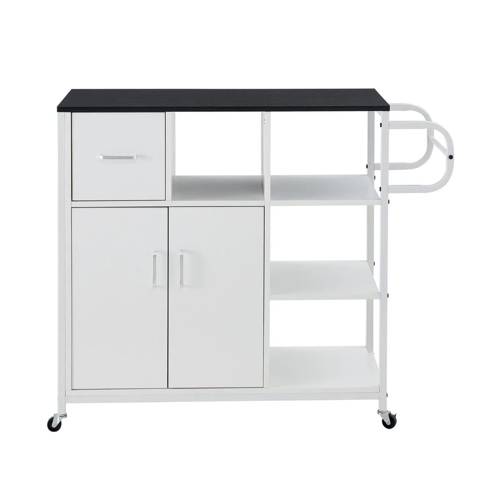 Cabinet space to store small appliance, pots and pans and much more. Drawer for storing utensils and dinnerware. Convenient and accessible way to display your microwave, toaster and other small appliances.